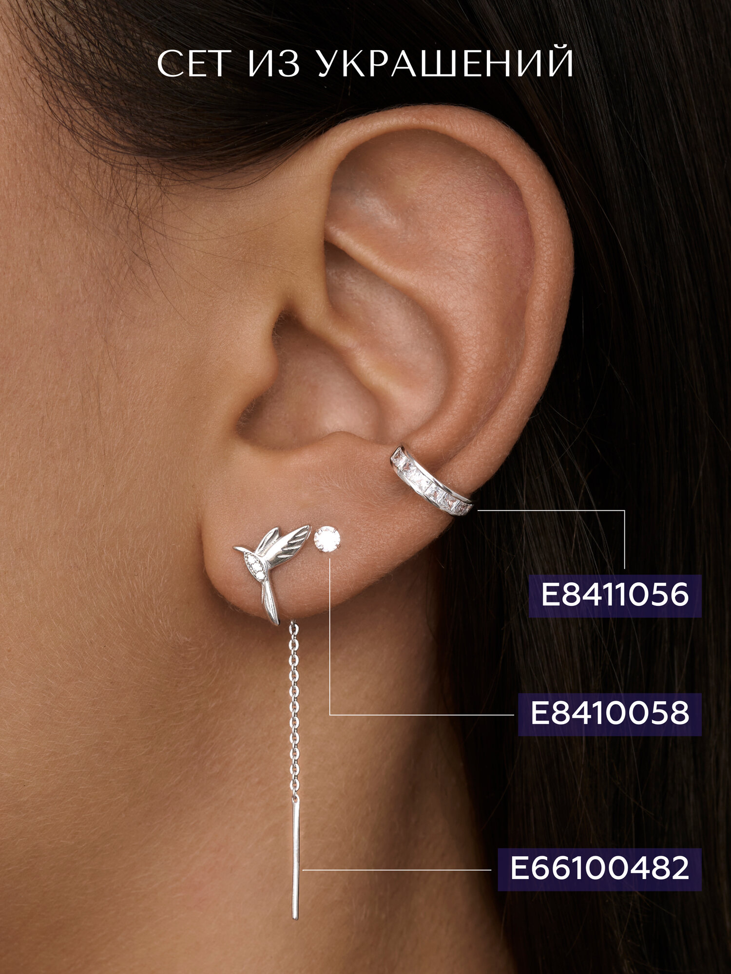 Серьги MIESTILO кафф моносерьга серебро