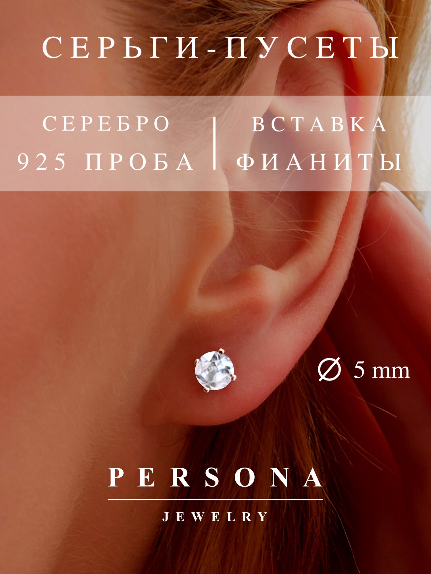 Серьги пусеты PERSONA E2312053R, серебро, 925 проба, родирование