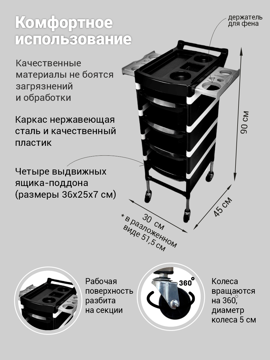 OKIRO / Тележка парикмахерская OKIRO F-037 черно-белая / тележка для парикмахера / этажерка для мастера интересное: