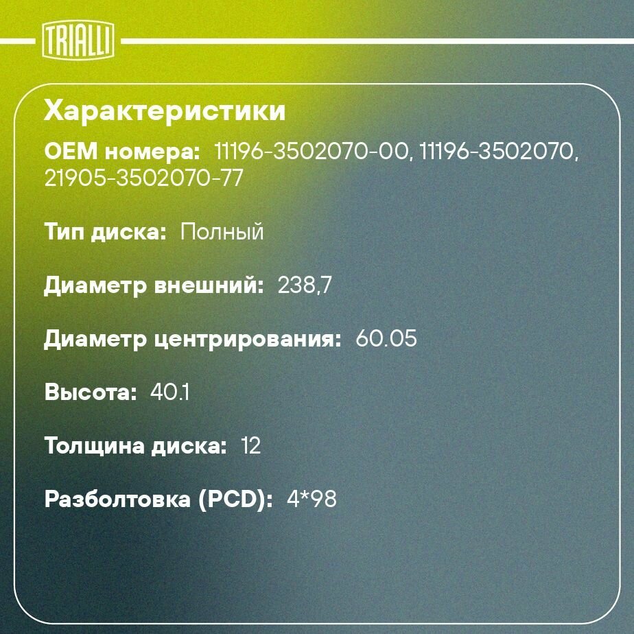 Диск тормозной TRIALLI ВАЗ 11196 Калина Спорт задний d 239, 2 шт