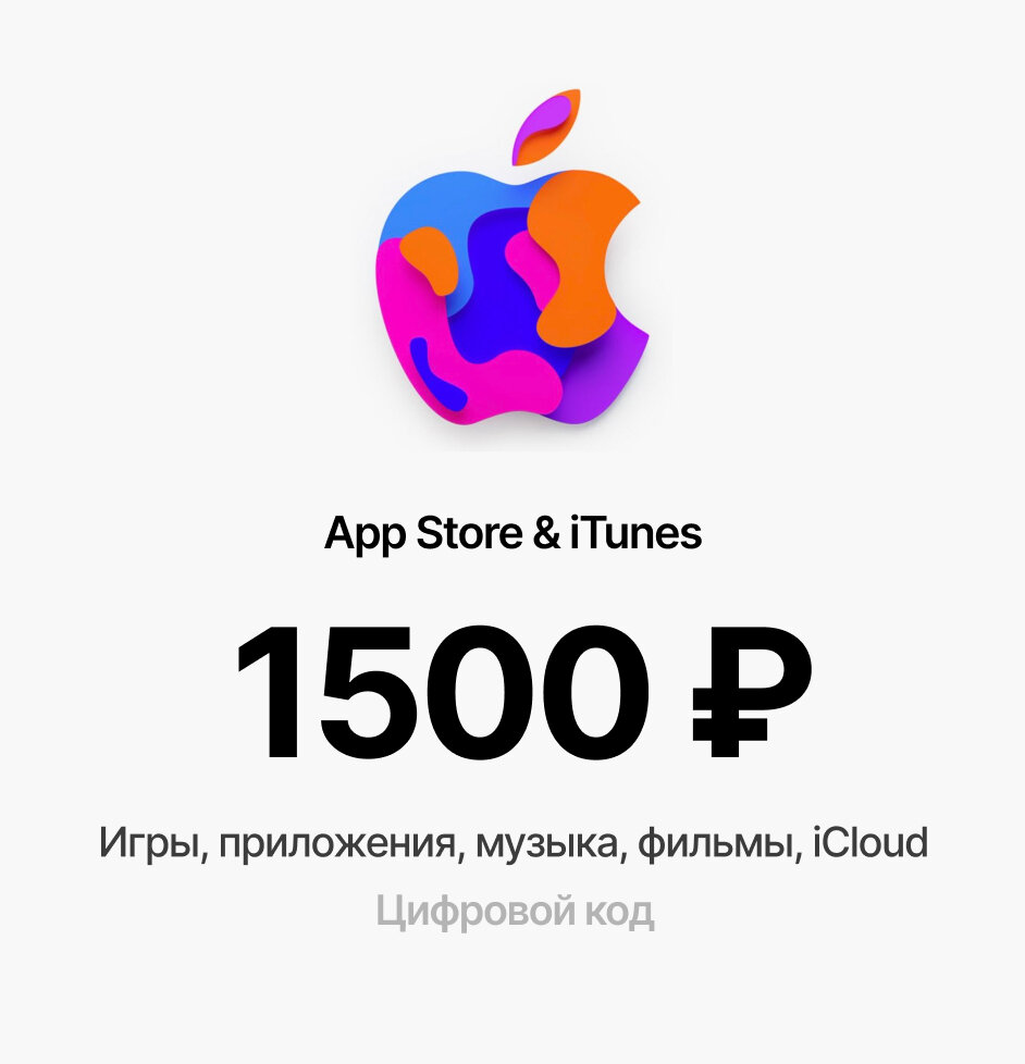 Купить Подарочная карта Apple iTunes AppStore 1500 рублей Россия / Пополнение счета, цифровой код