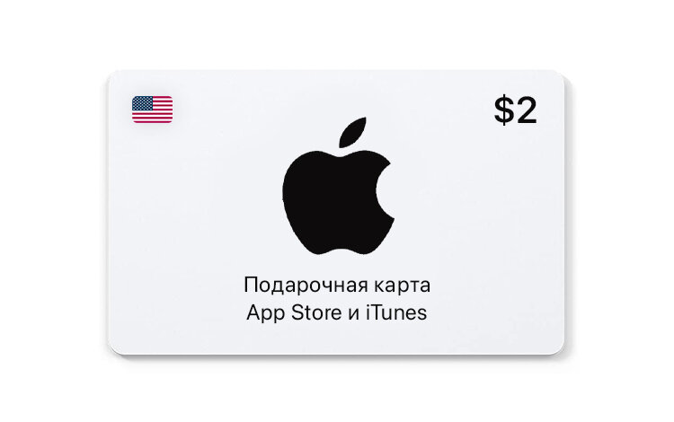 Подарочная карта/карта оплаты Apple (пополнение счёта на 2 USD App Store и iTunes), Америка