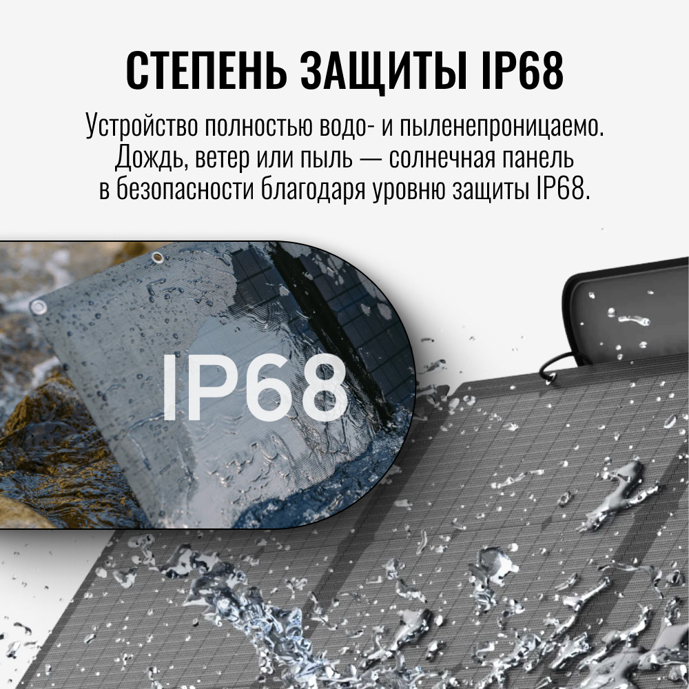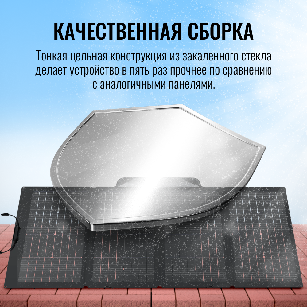 | Подробная комплектация | Солнечная панель Защитный футляр и подставка Карабин x4 Кабель для зарядки от солнечных панелей Выходной контроллер MC4 Руководство пользователя и гарантийный талон |