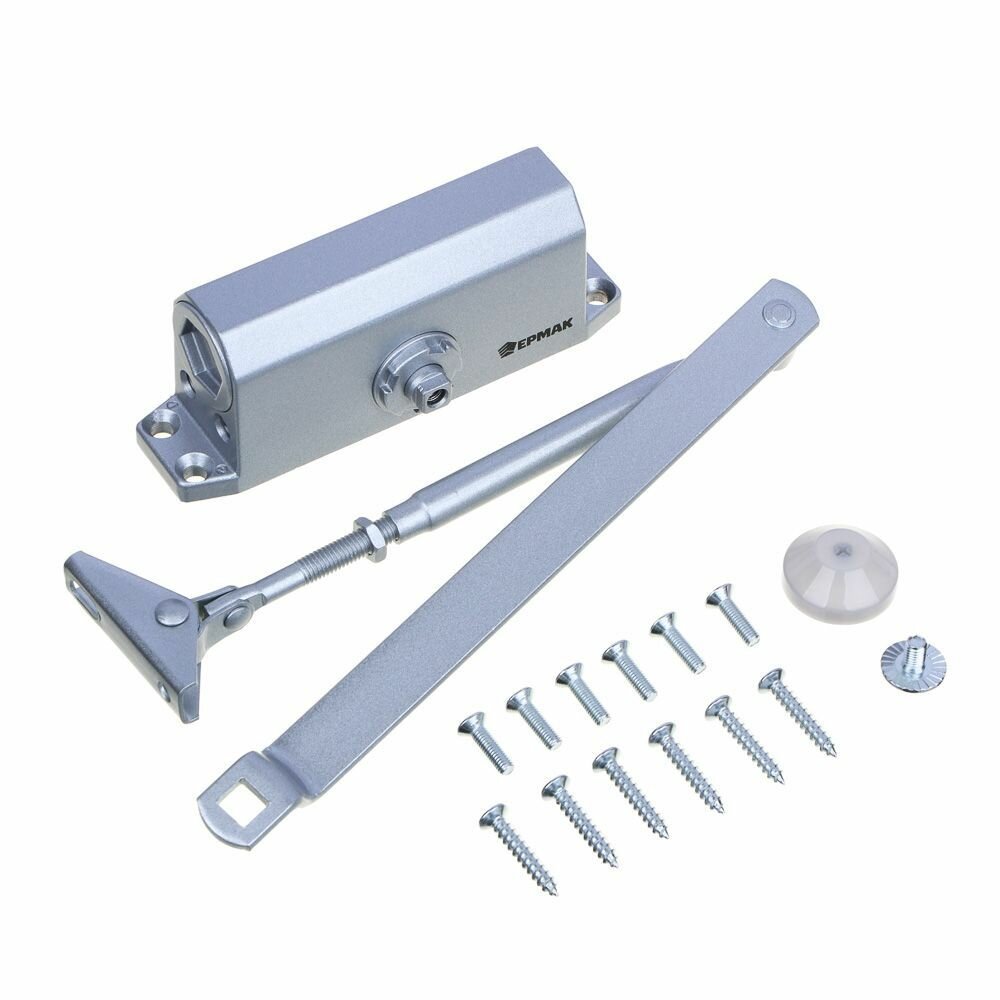 Доводчик дверной для дверей массой 25-45 кг ермак, размер 132*19, цвет серебро интересное: