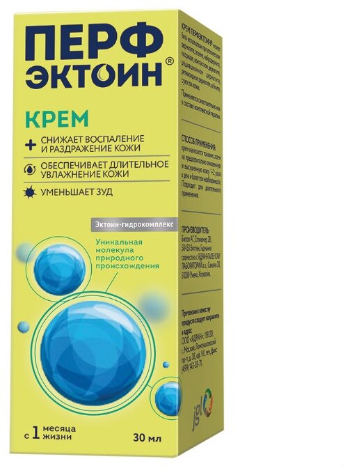 | Особые указания | Перфэктоин® рекомендован к применению у детей после 1 месяца жизни. В более ранний период жизни применение средства не рекомендовано, так как в этот период заканчивается формирование кожного покрова ребенка. Была показана безопасность и хорошая переносимость эктоина (активного вещества крема Перфэктоин®) как натурального компонента, кроме того, в креме не используются потенциально вредные составляющие, такие как консерванты, красители, поверхностно-активные вещества. Крем Перфэктоин® не вызывает привыкания. Подходит для длительного применения. В случае появления нежелательных реакций, связанных с применением крема Перфэктоин®, необходимо прекратить применение косметического средства и обратиться к врачу. |