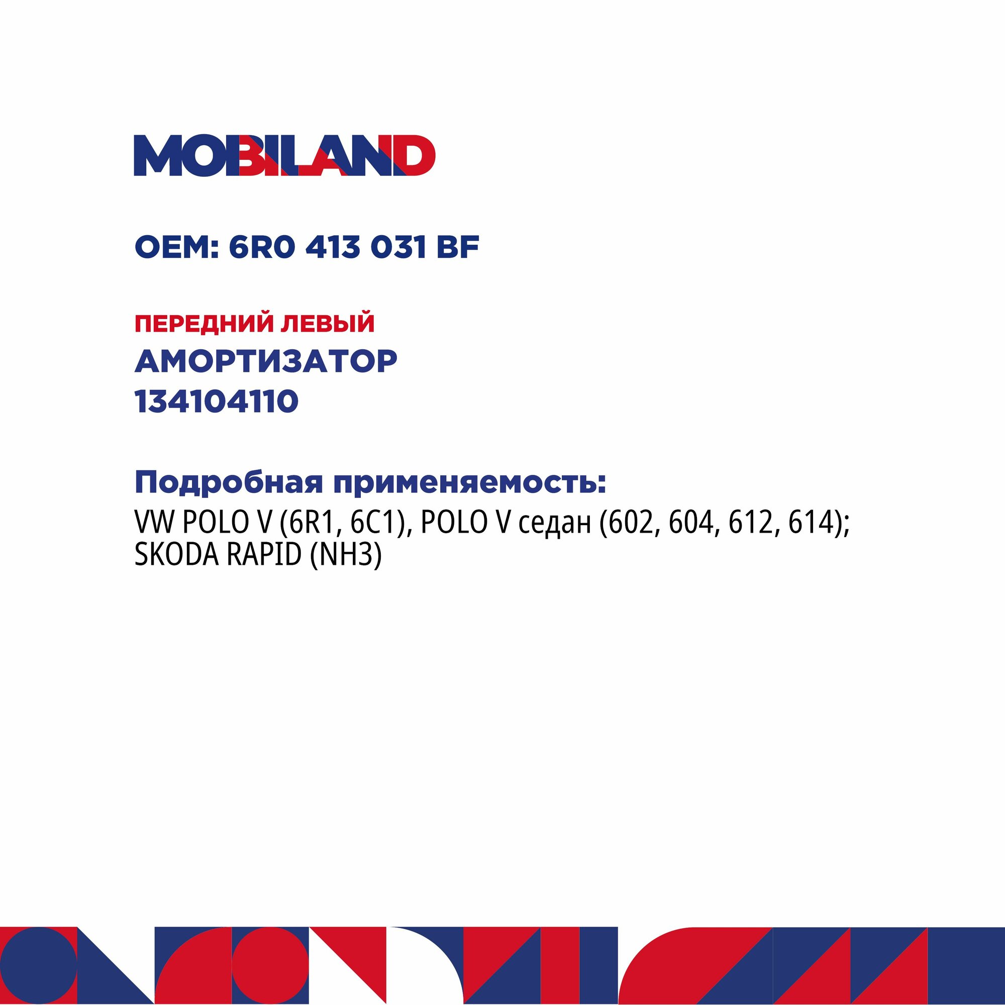 Купить Амортизатор (стойка) передний газомасляный для а/м VW POLO V седан (602, 604, 612, 614); SKODA RAPID (NH3), MOBILAND 134104110