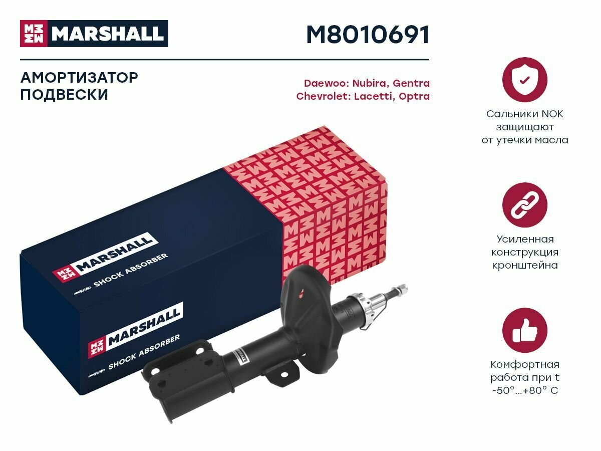 Амортизатор газонаполненный передний левый MARSHALL M8010691 для Chevrolet Lacetti 04-, Chevrolet Optra 04-, Daewoo Gentra 04-, Daewoo Nubira III 03-