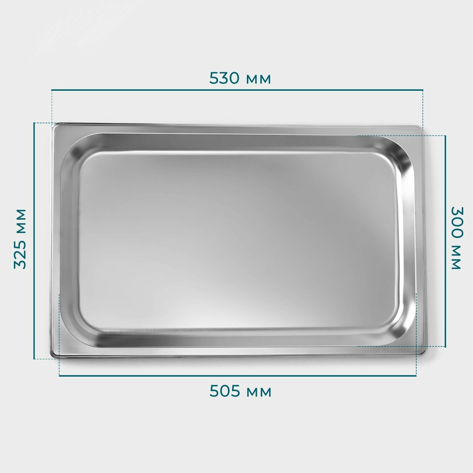 Гастроемкость 1/1 из нержавеющей стали, 100 мм, 52,5×33×9 см, толщина 0,8 мм