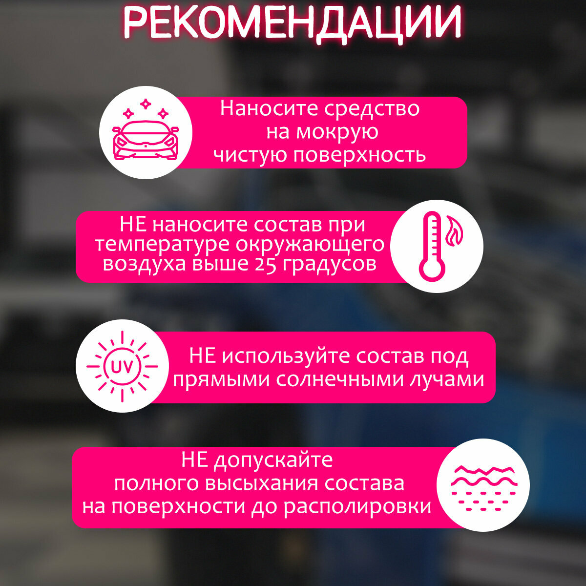 | Действие | защищает ЛКП, маскирует царапины, придает блеск, устраняет голограммы, устраняет царапины |