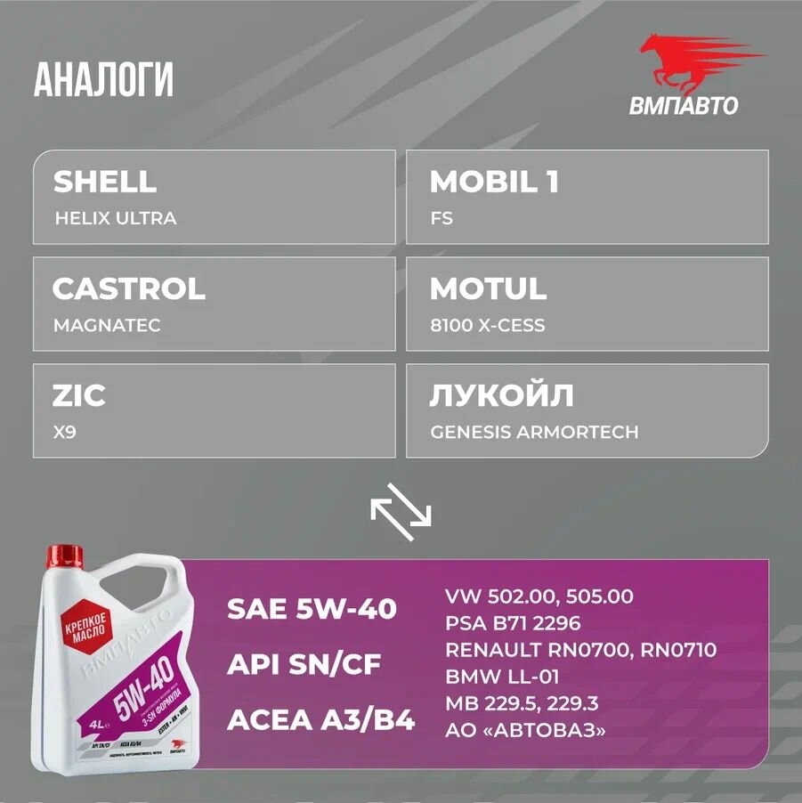 Синтетическое моторное масло ВМПАВТО 5W-40 API SN/CF A3/B4 20 литров канистра интересное: