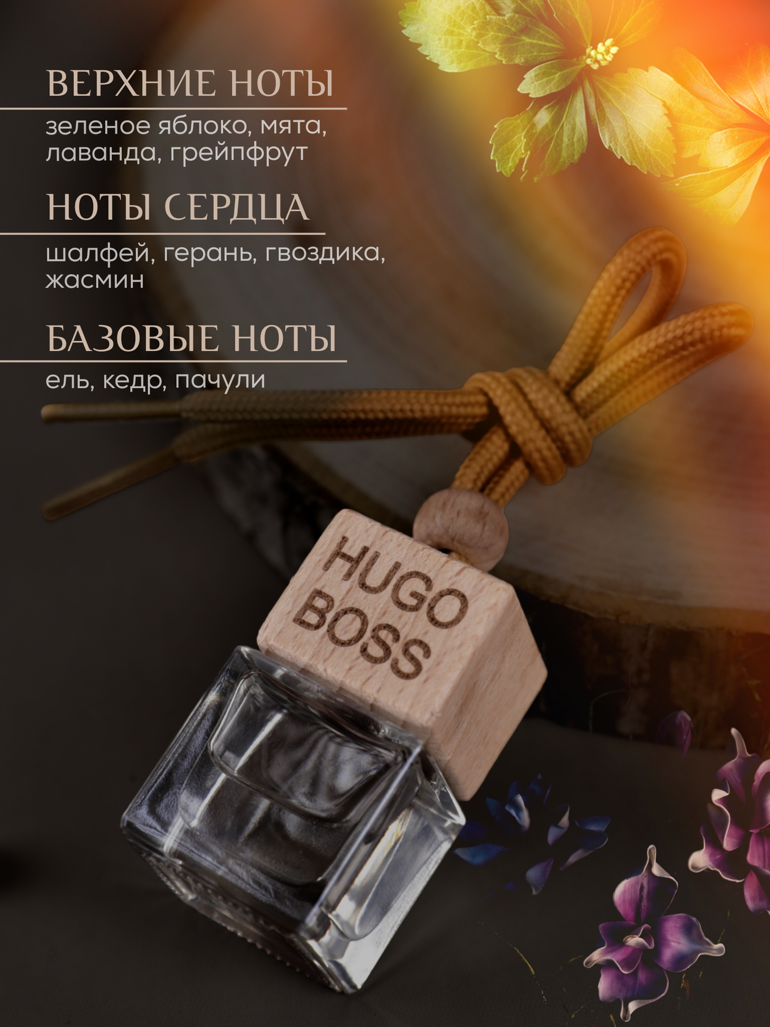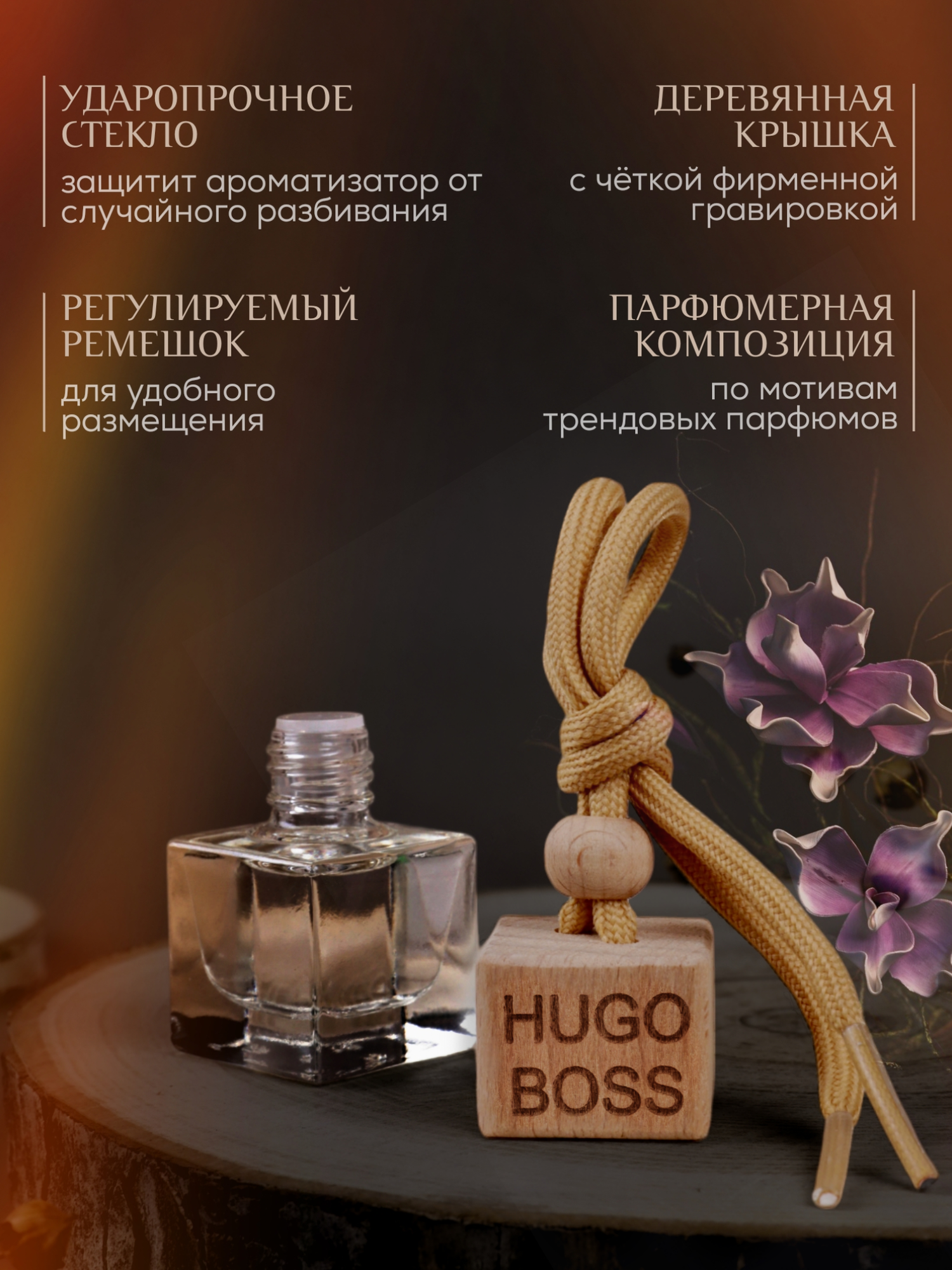 Ароматизатор Hugo Boss, стекло, дерево, подвесной, на зеркало заднего вида