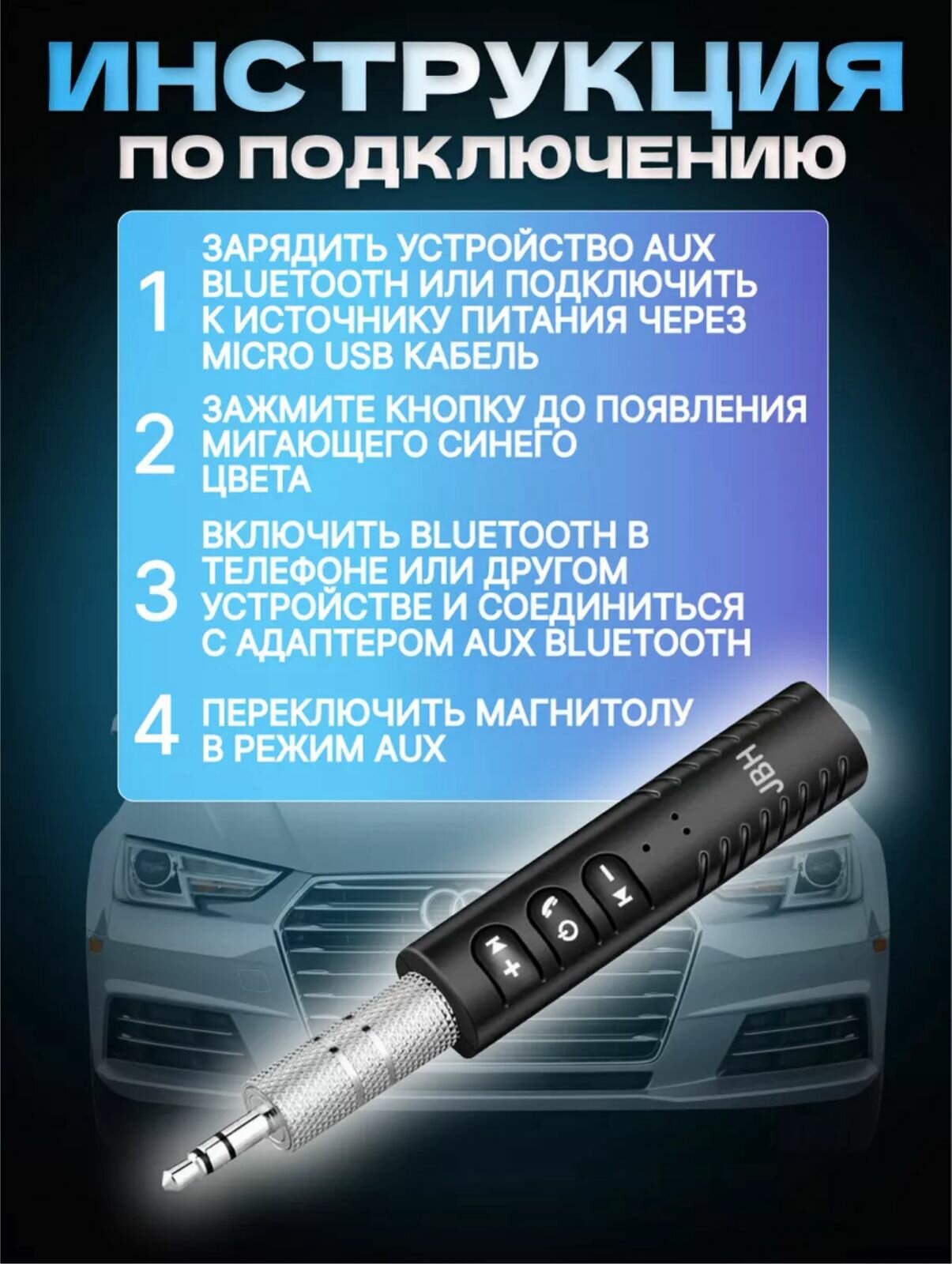 Блютуз-ресивер для авто и гаджетов с AUX/Bluetooth для музыки Черный AUX интересное: