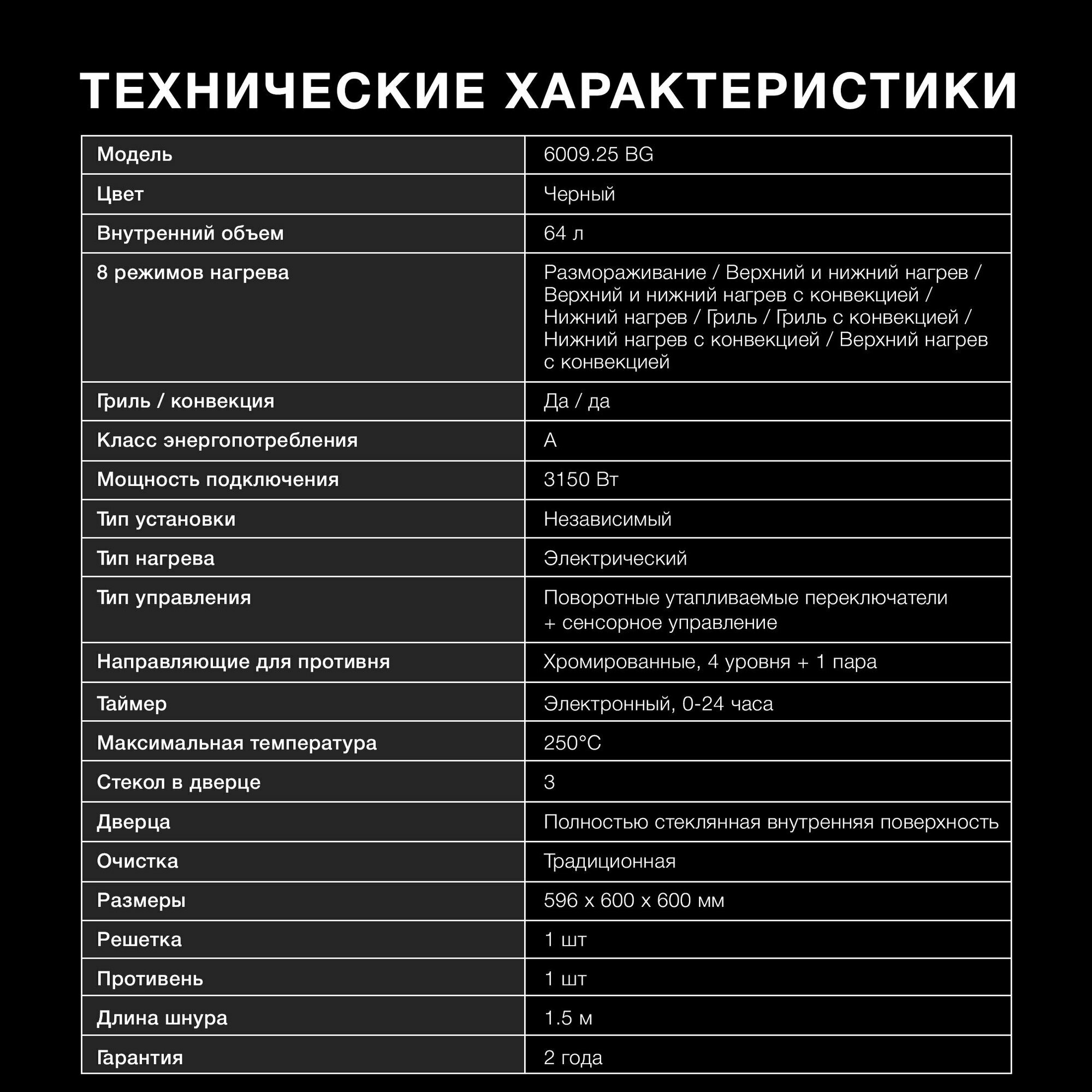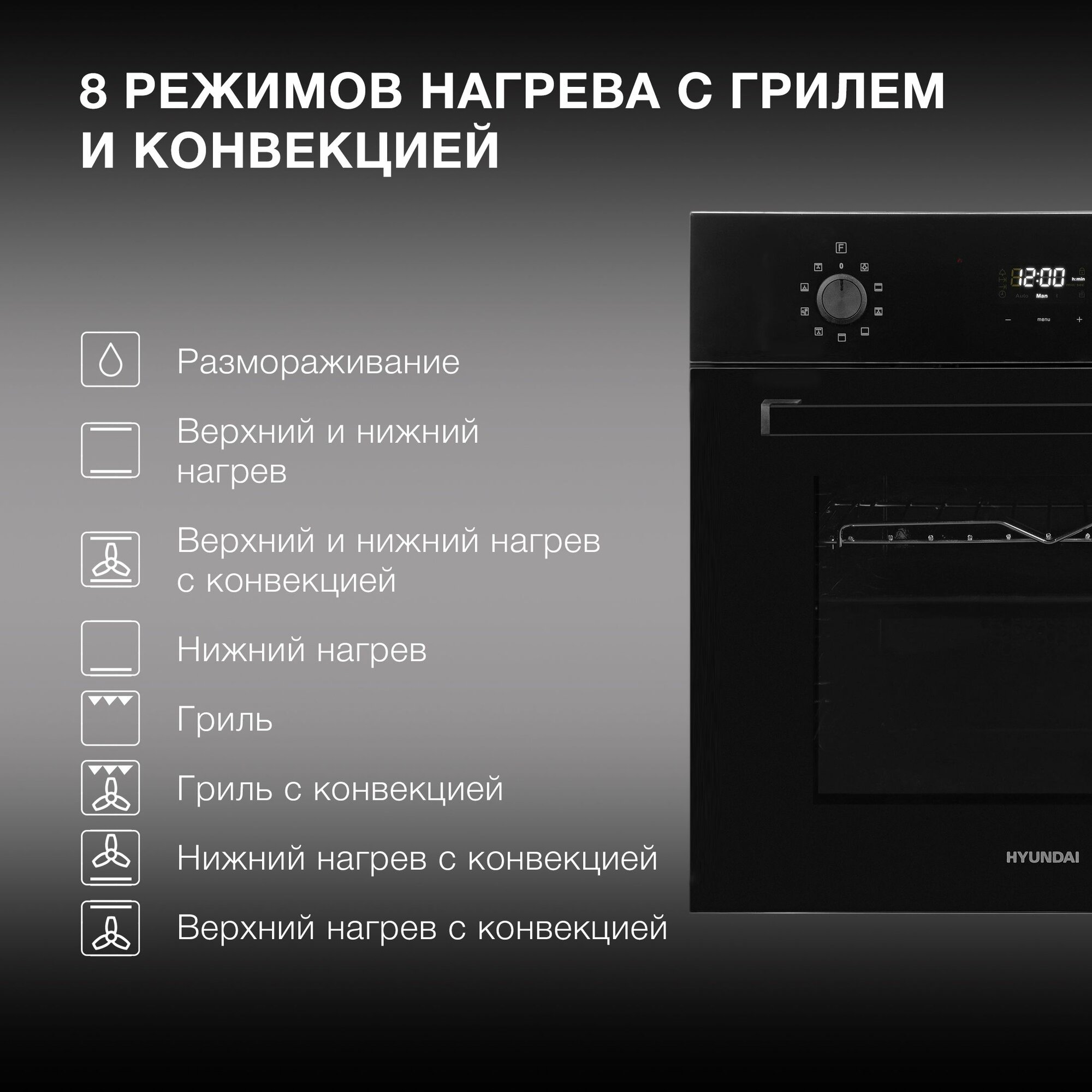 Купить Электрический духовой шкаф Hyundai 6009.25 BG, ширина 60 см, объем 64 л, черный, Россия