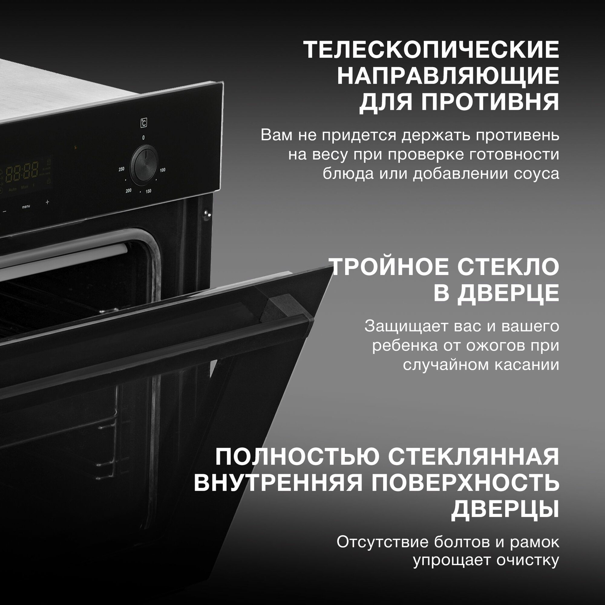 | Число стекол дверцы духовки | три |