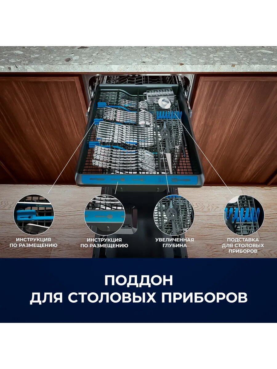 | Особенности конструкции | автоматическое открывание дверцы по завершении цикла / дисплей / использование средств 3 в 1 / регулируемая по высоте корзина для посуды / сенсор чистоты воды / таймер отсрочки |