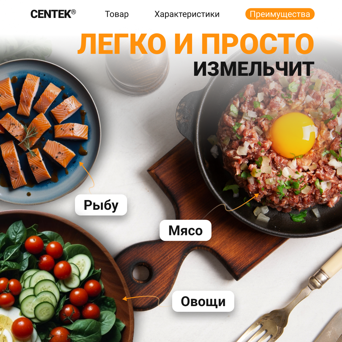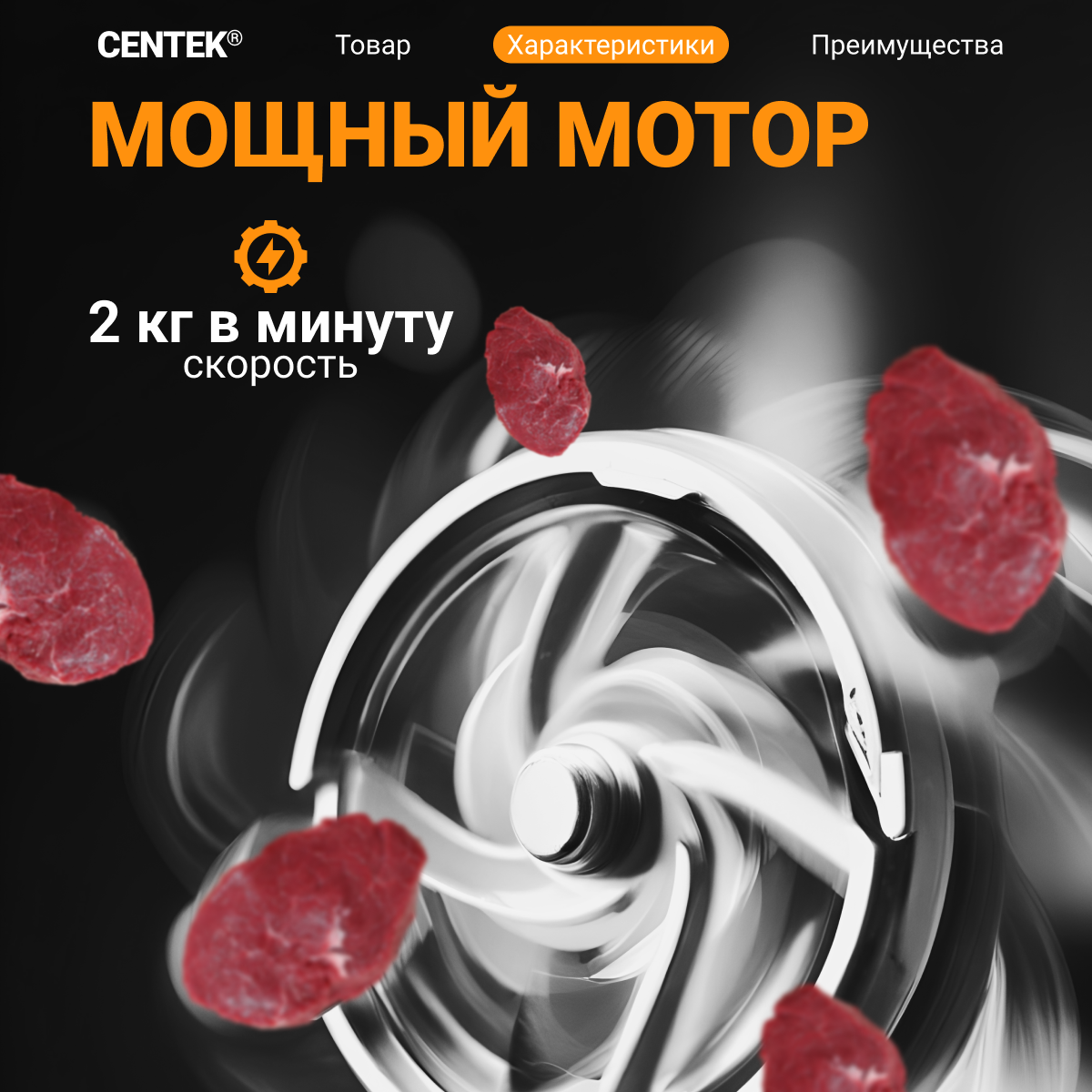 Мясорубка электрическая 2000 Вт Centek CT-1603, 2кг/мин, черный интересное: