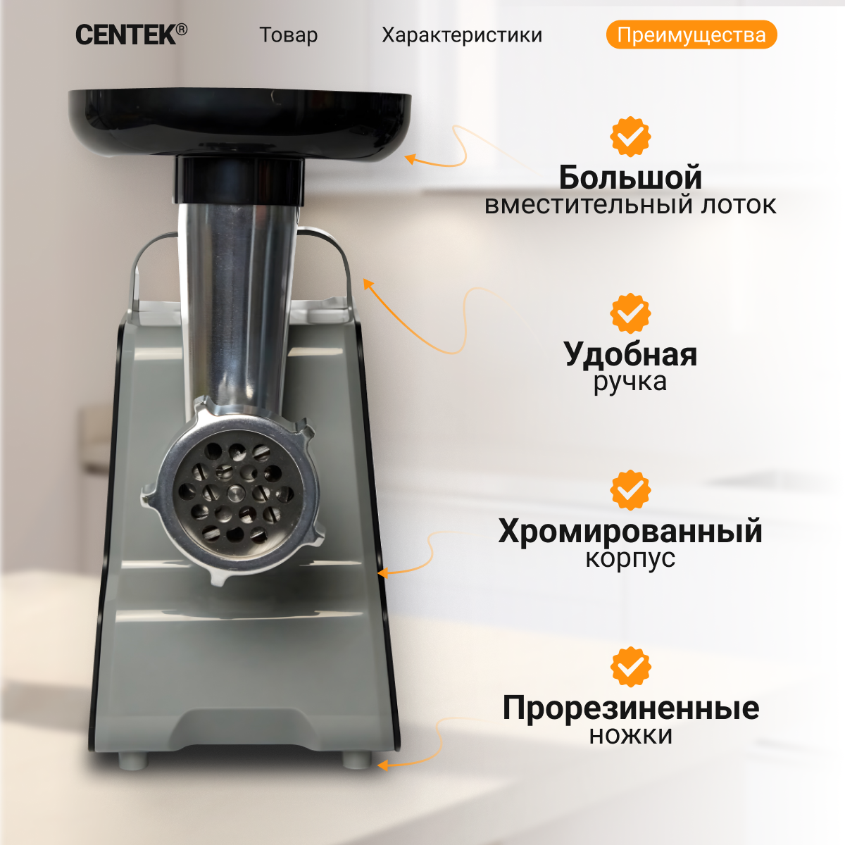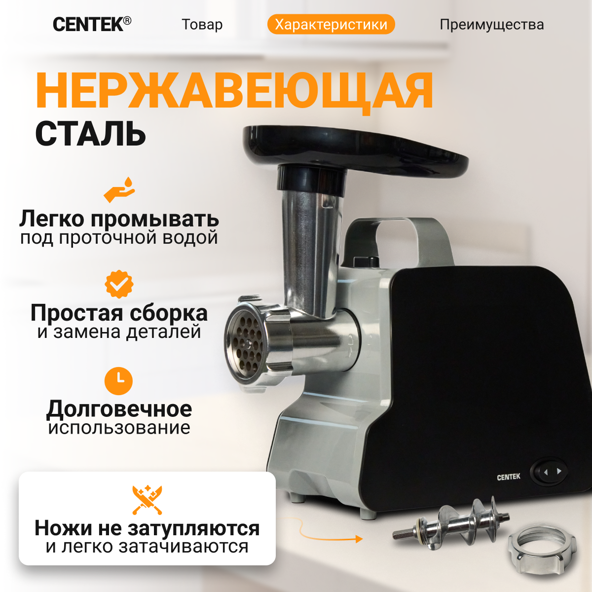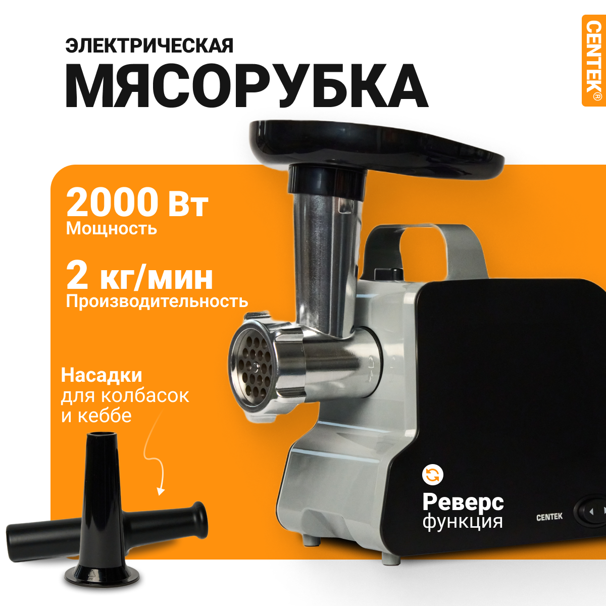 Купить Мясорубка электрическая 2000 Вт Centek CT-1603, 2кг/мин, черный