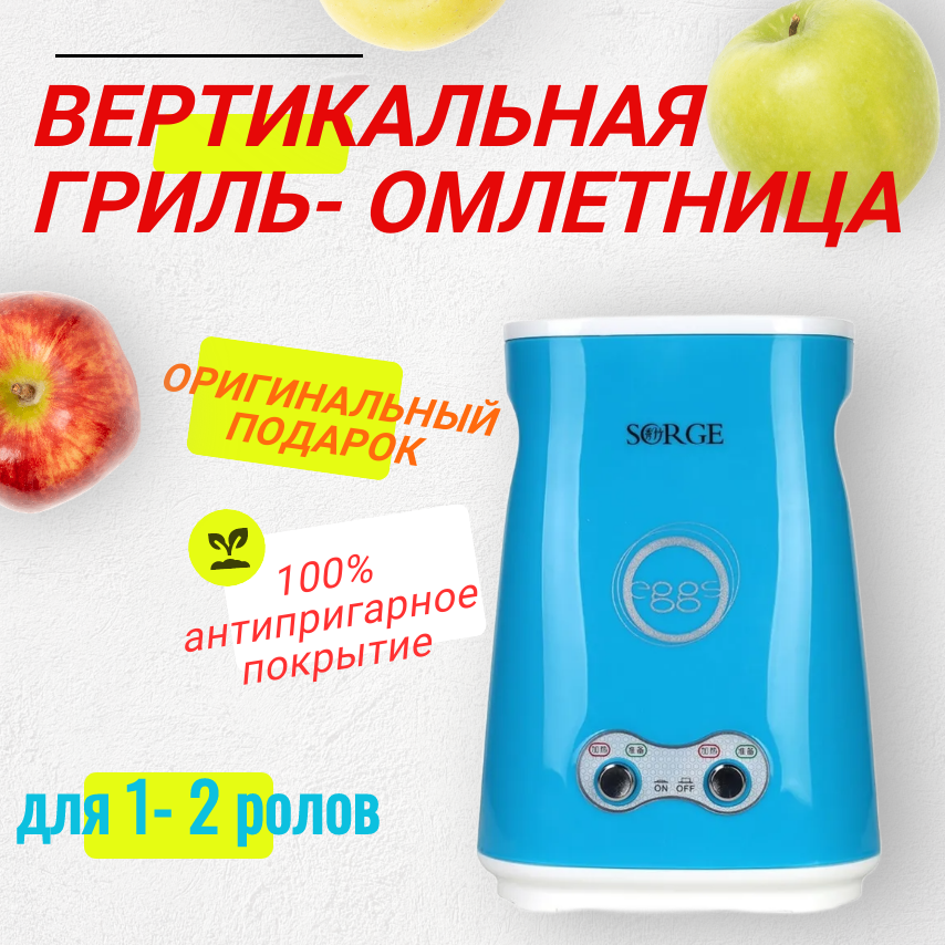 Умная вертикальная гриль- омлетница "SORGE", для 2-х ролов, электрическая, с автоподнятием готовых ролов, голубая. интересное: