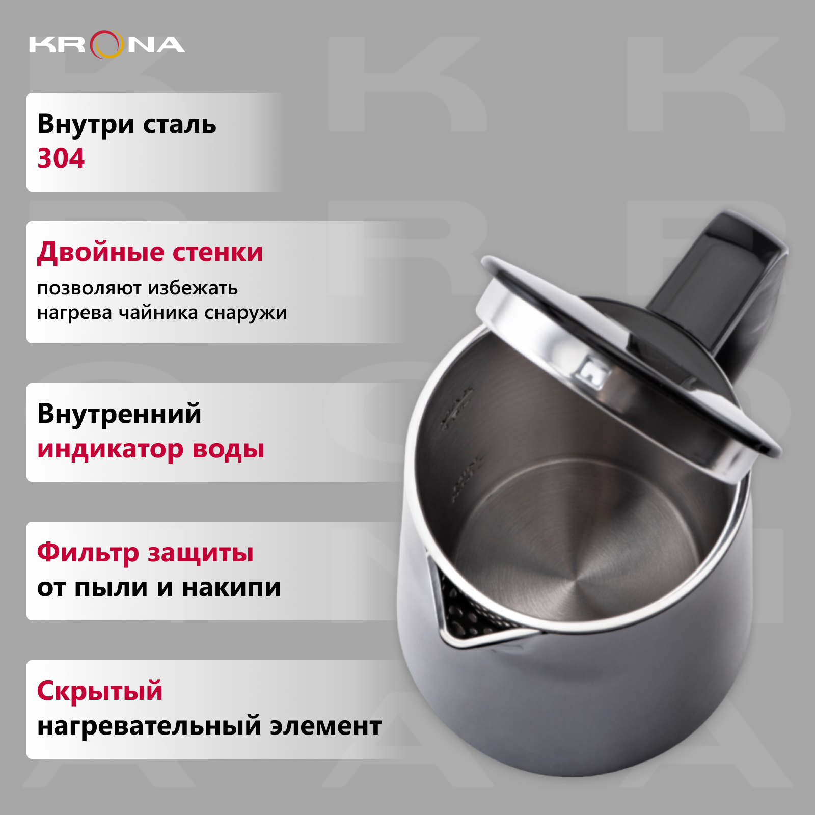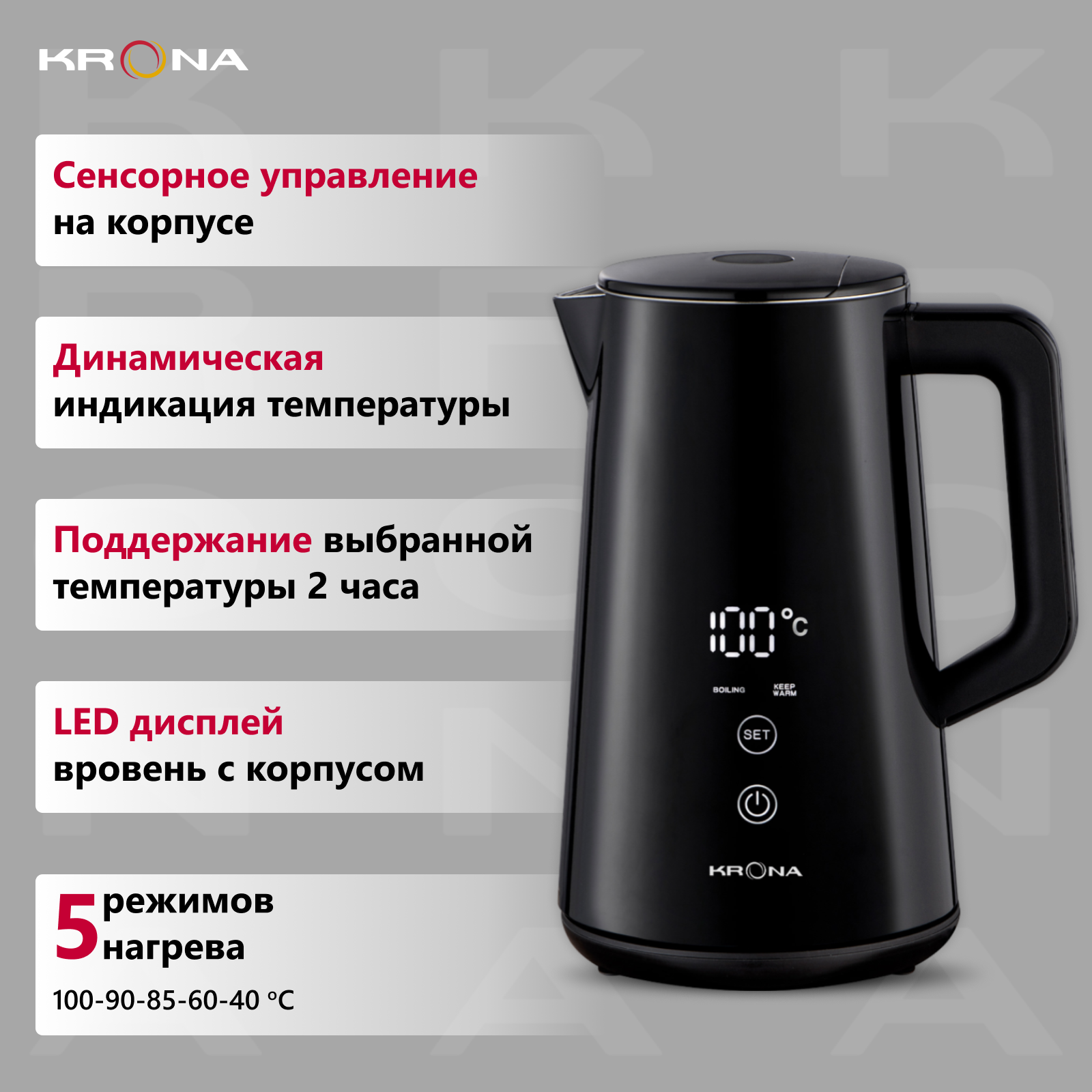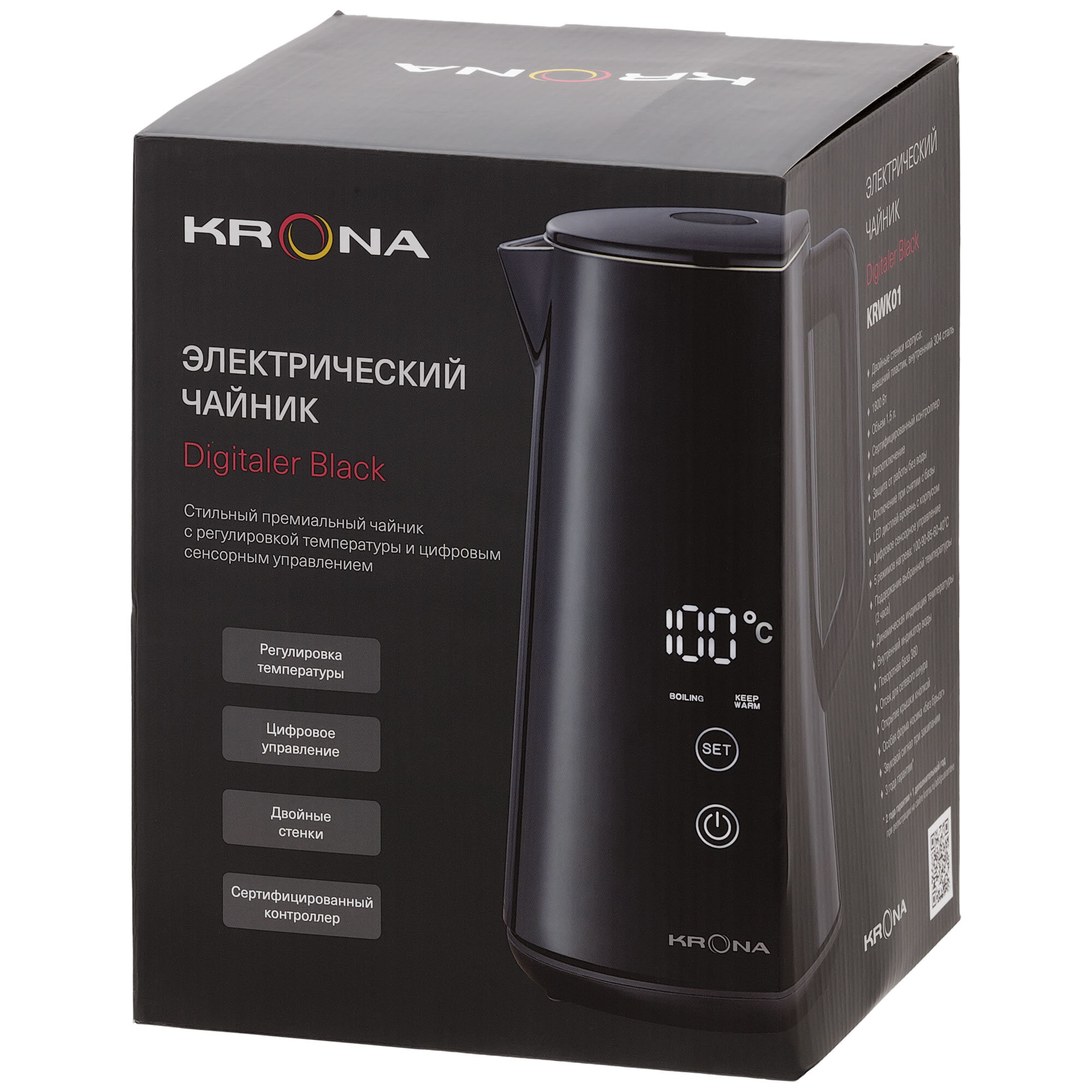 Чайник электрический Krona Digitaler Black, 1.5л интересное: