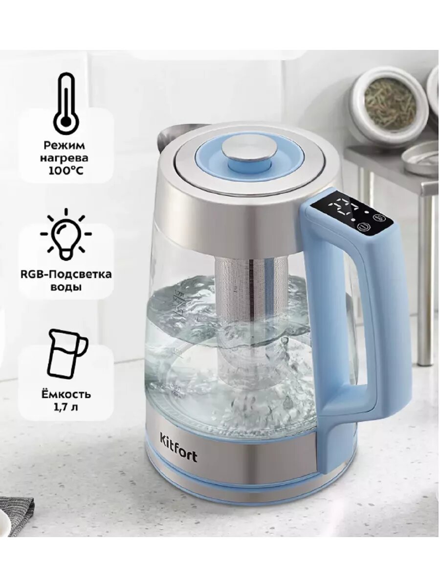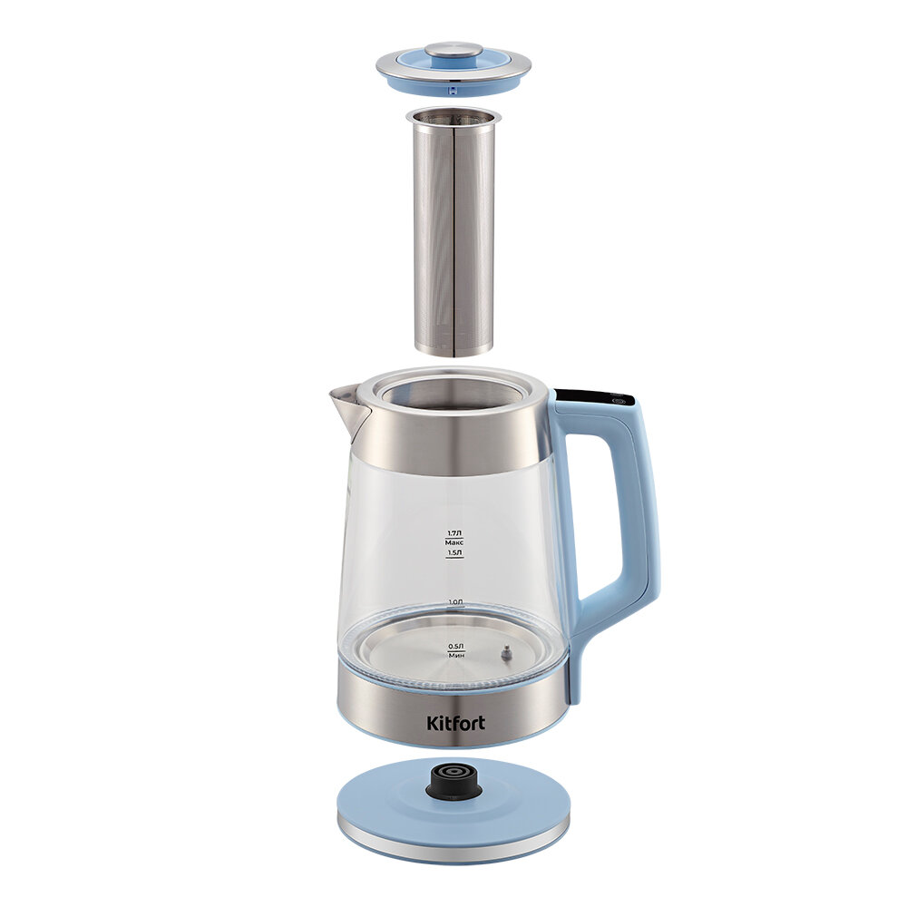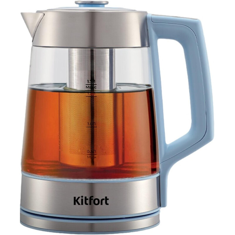 Чайник электрический KitFort КТ-6617, 2200Вт, голубой и нержавеющая сталь интересное: