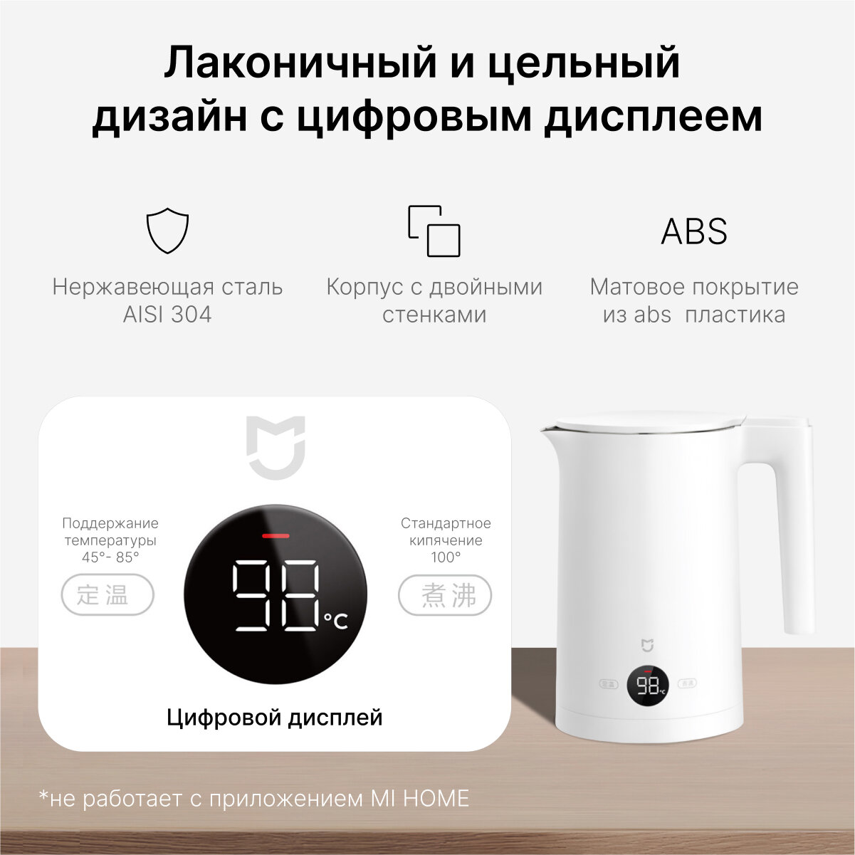Купить Чайник Xiaomi Mijia Thermostatic Electric Kettle 2, CN, белый, универсальный переходник в комплекте