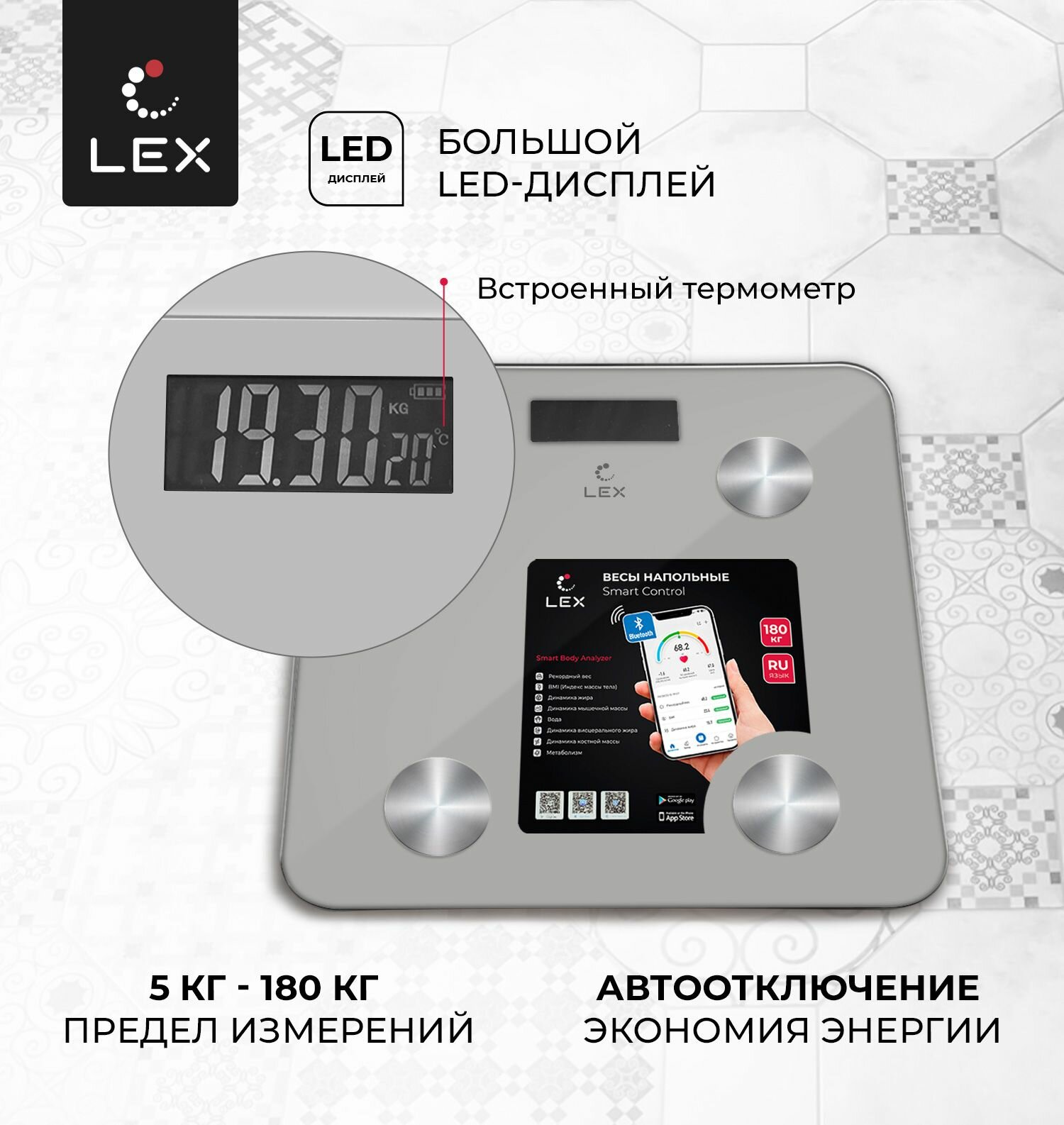 Напольные электронные умные весы LEX LXBS 9013, SMART CONTROL, стеклянные, до 180кг, Bluetooth интересное: