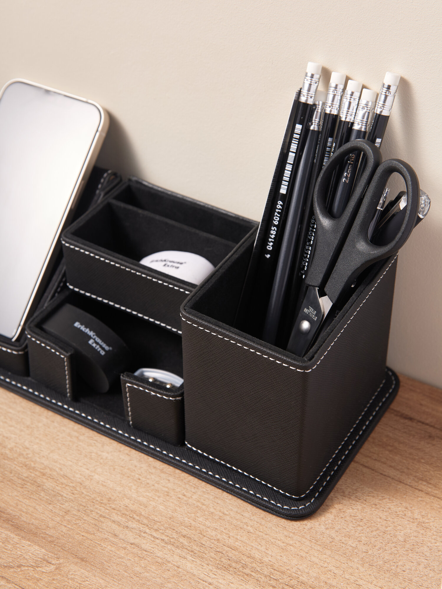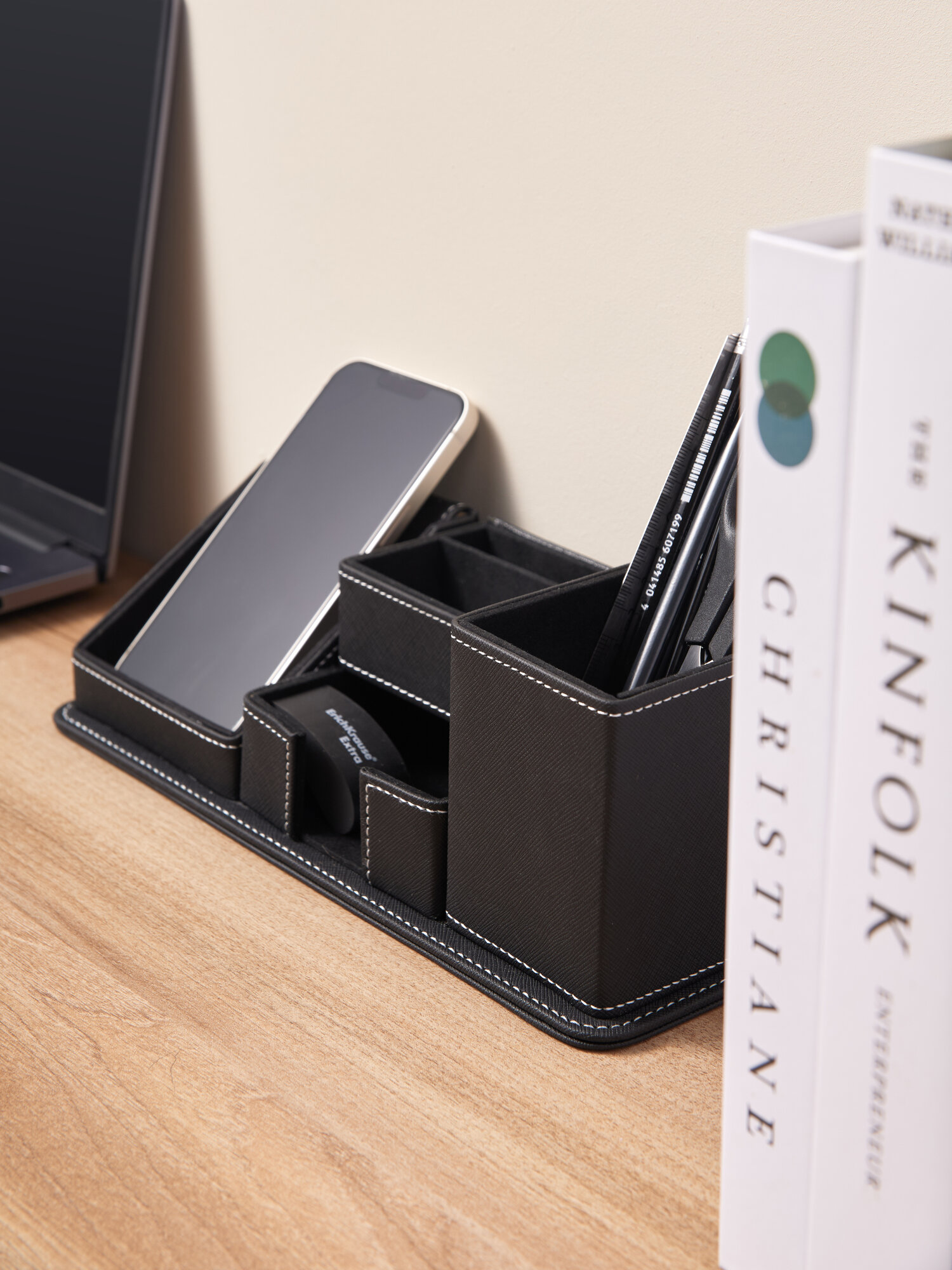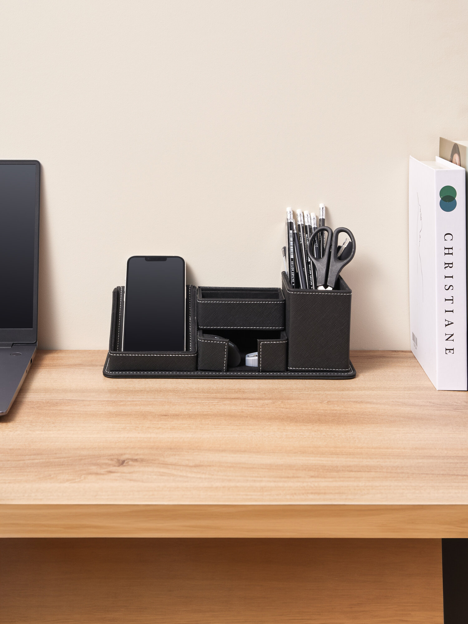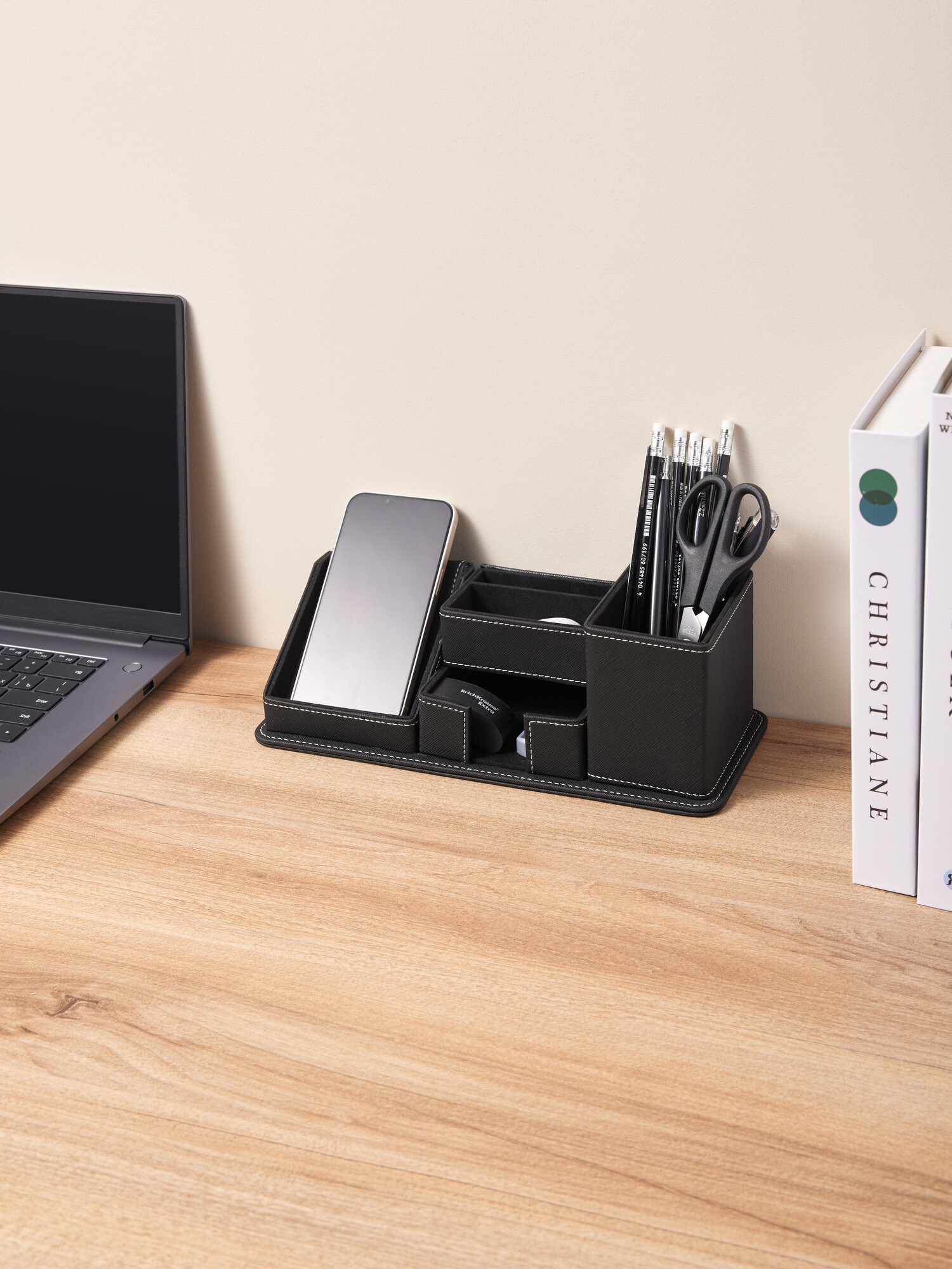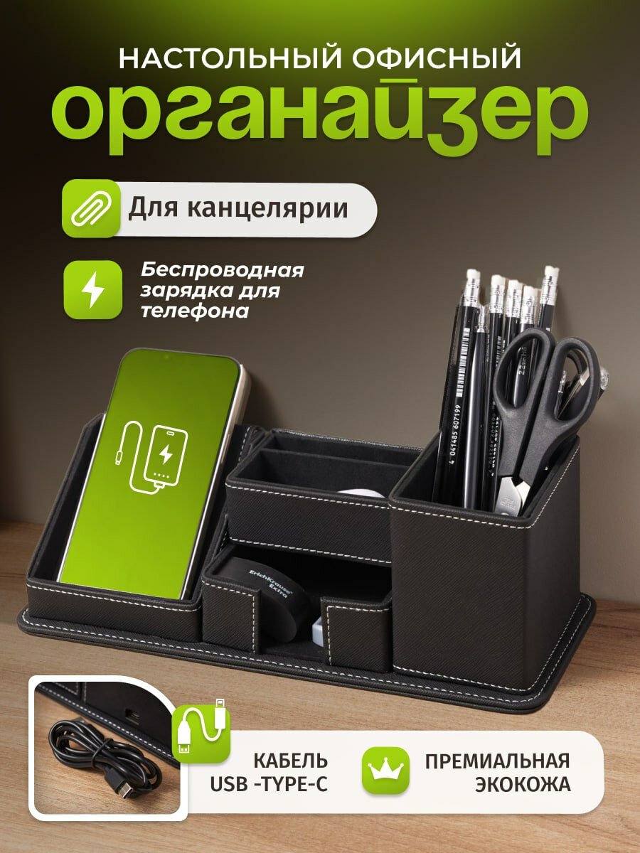 Купить Стильный и многофункциональный настольный органайзер для канцелярских принадлежностей ISISLAND с беспроводной зарядкой для iPhone, Samsung и других моделей телефонов, черного цвета. Идеально подходит для дома и офиса.