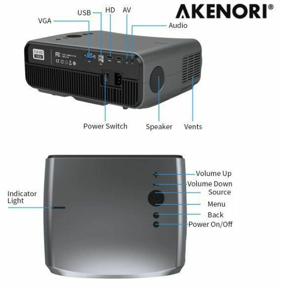 Проектор для фильмов с поддержкой 4К Akenori LED-111A15 CAIVVEI проектор для фильмов с поддержкой 4К