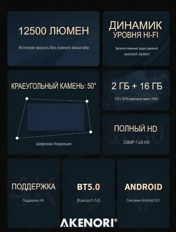 Проектор Akenori LED-111A15, 3840х2160, 13000лм, 2 встроенных динамика