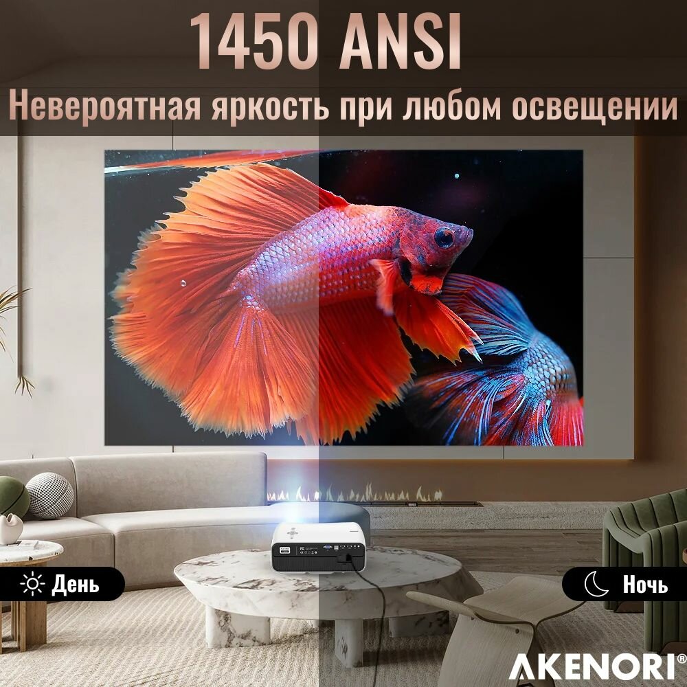 Проектор Akenori LED-111A15, 3840х2160, 13000лм, 2 встроенных динамика
