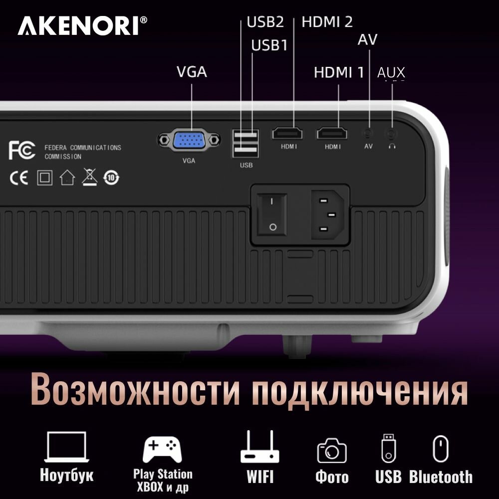 Проектор для фильмов с поддержкой 4К Akenori LED-111A15 CAIVVEI проектор для фильмов с поддержкой 4К