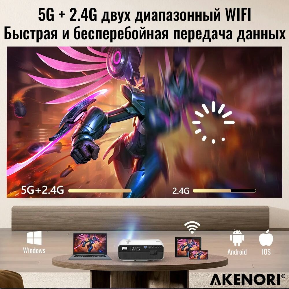 Проектор для фильмов Akenori Wi-Fi портативный переносной мини проектор