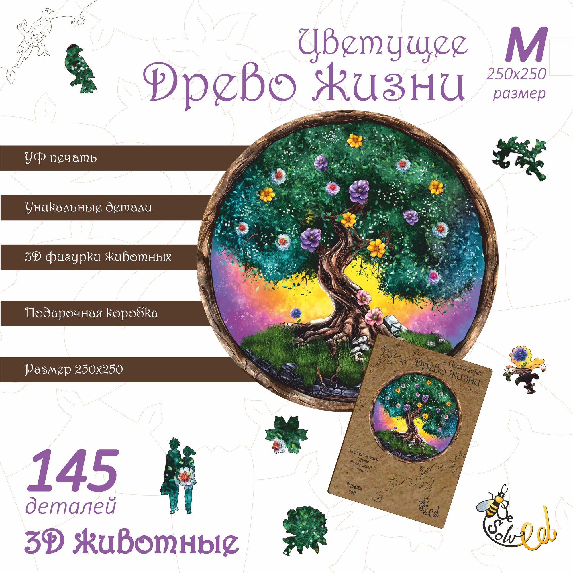 Купить "Цветущее Древо жизни" - деревянный пазл для детей и взрослых, 145 элементов в форме животных