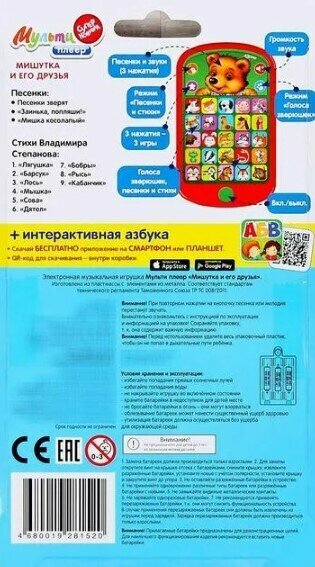 СохранитьМультиплеер Азбукварик Мишутка и его друзья Смартфончик (4680019281520) интересное: