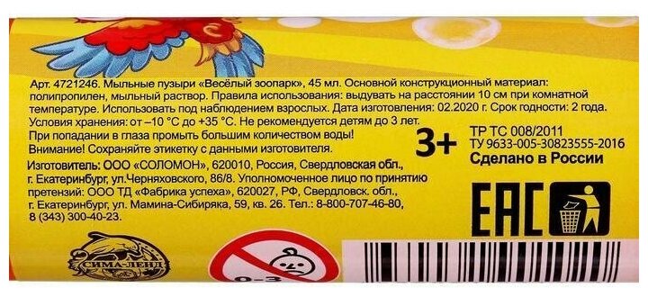 Мыльные пузыри Весeлый Зоопарк, 45 мл 15 шт интересное: