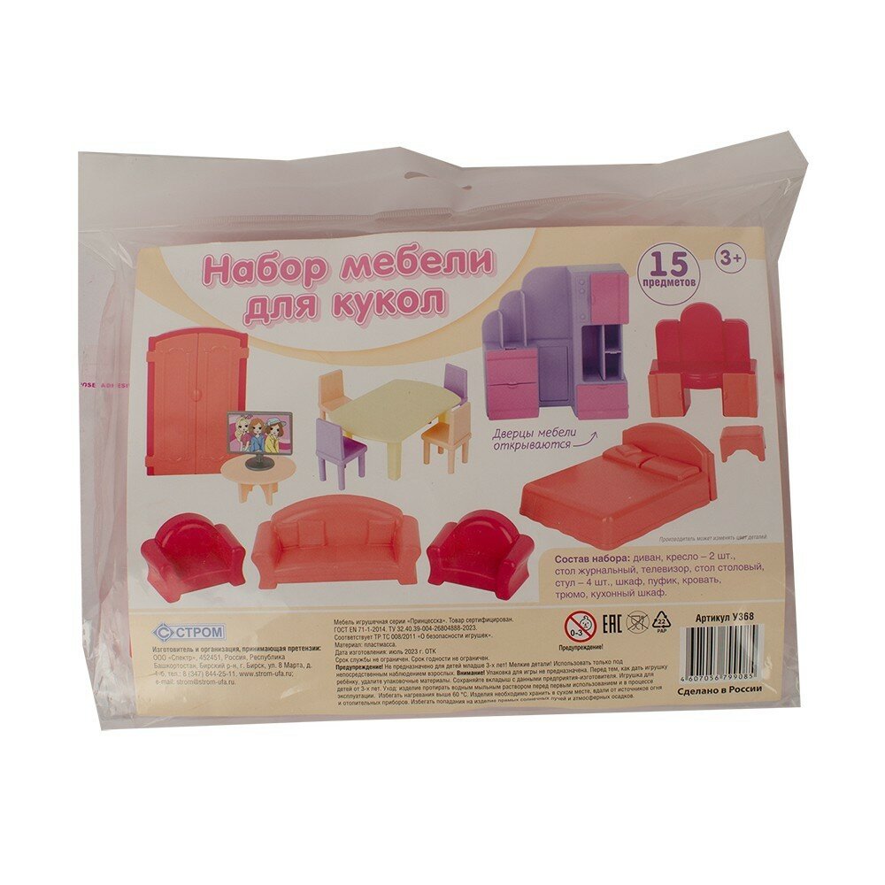 Мебель для кукол (15 предметов, пластик, в пакете, от 3 лет) У368, (ООО ""Спектр"")