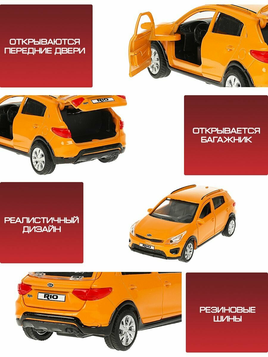 Купить Машинка детская KIA Rio X 12 см, Технопарк, оранжевая, открываются двери и багажник, металлический корпус