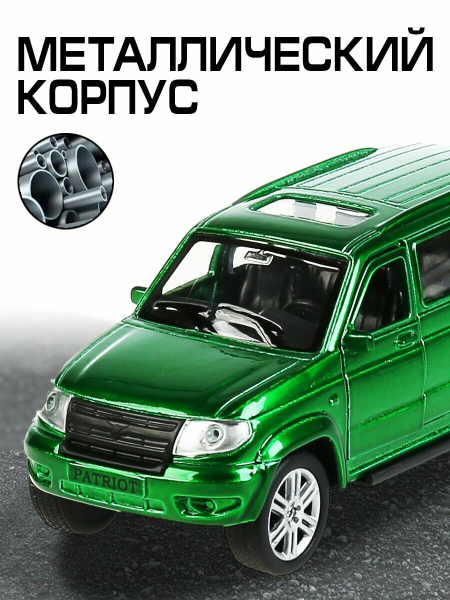 Купить Машинка детская УАЗ Патриот 12 см, Технопарк, зеленая, открываются двери и багажник, металлический корпус