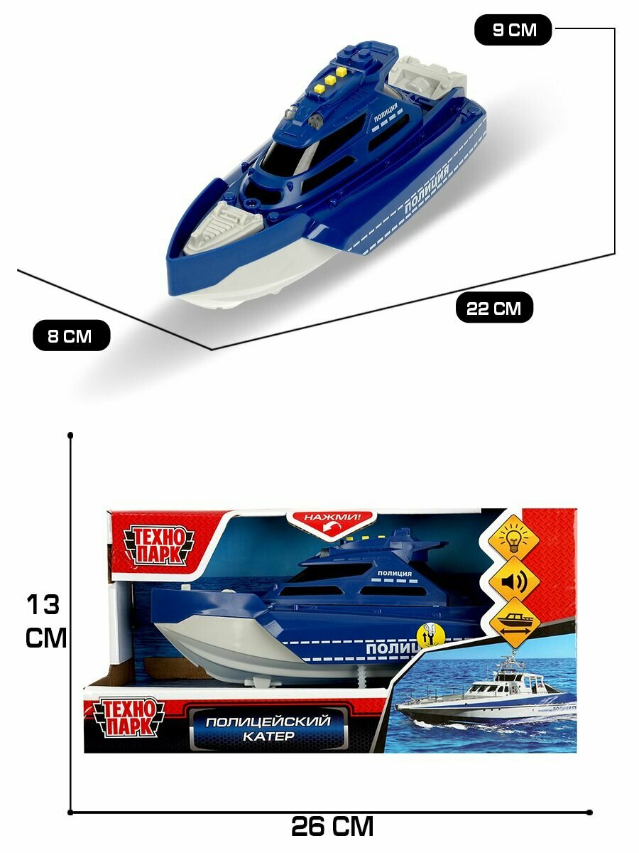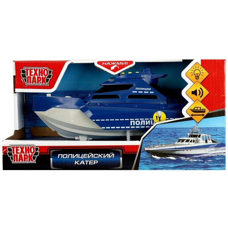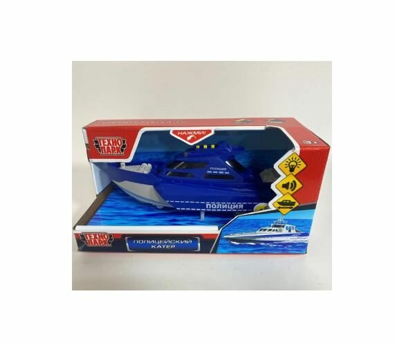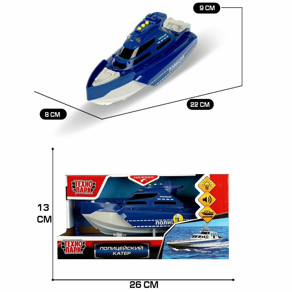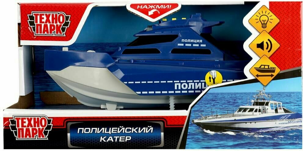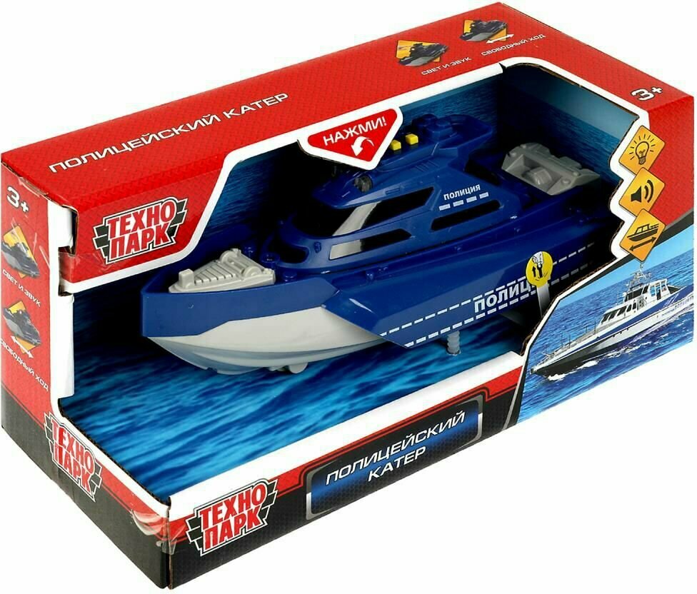 Купить Игрушка для мальчика Полицейский катер 22 см, Технопарк, синий, пластиковый корпус, свет и звук