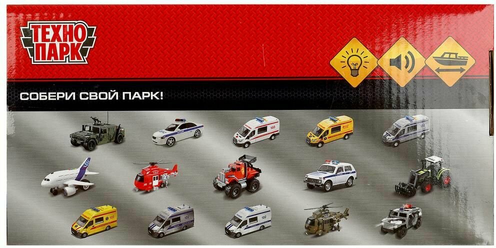 Игрушки для мальчика Транспортный корабль 17 см и Газель скорая помощь 8 см, Технопарк, металлический корпус, подвижный кран, открывается люк, свет и звук