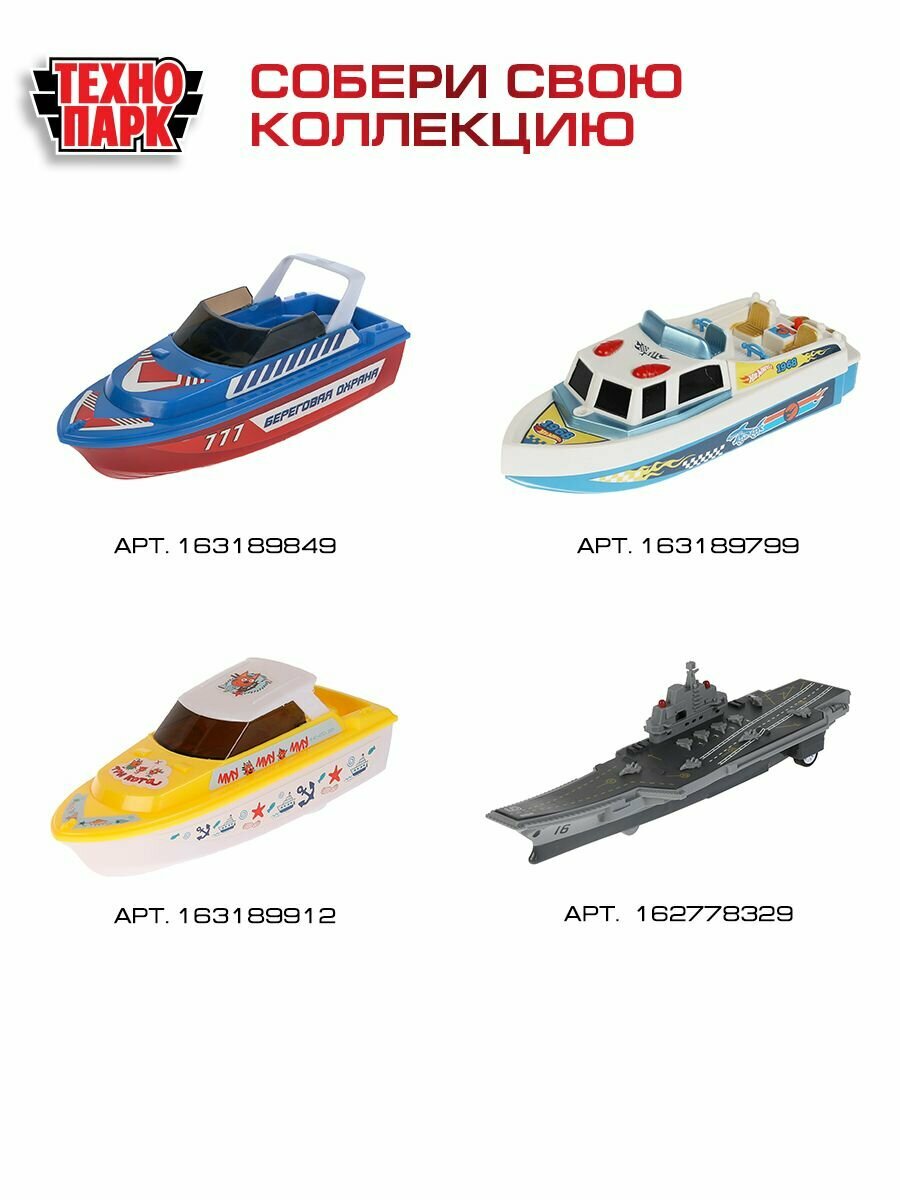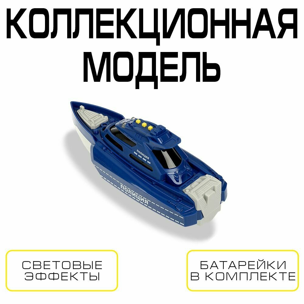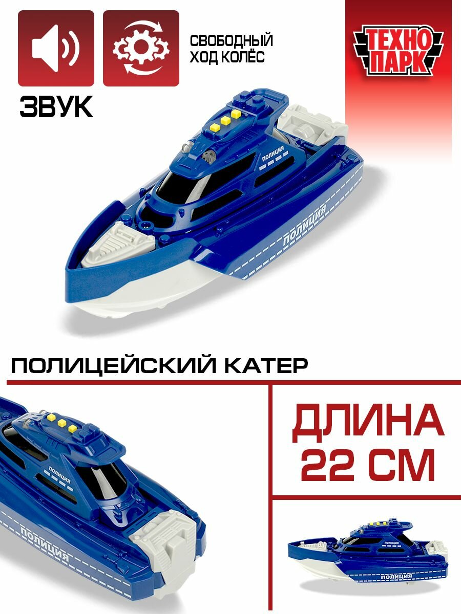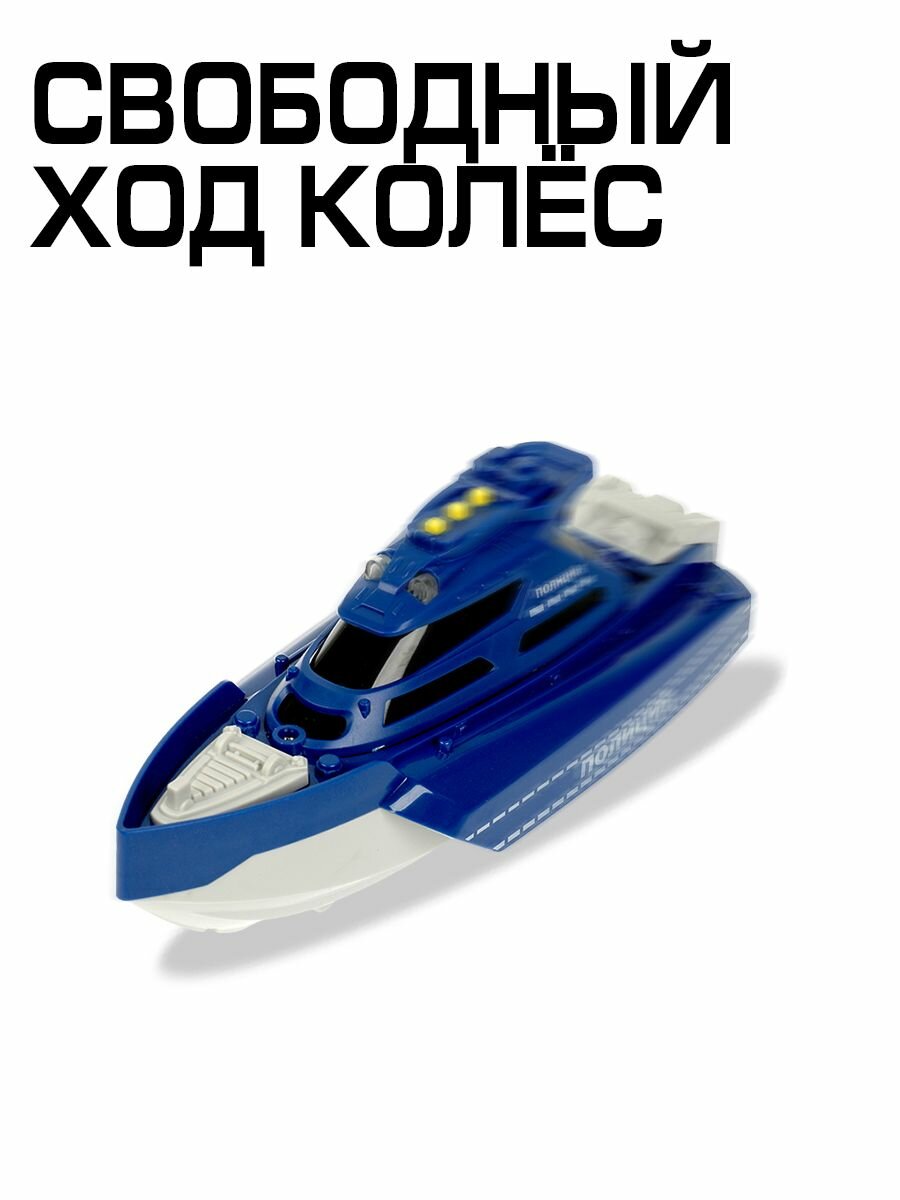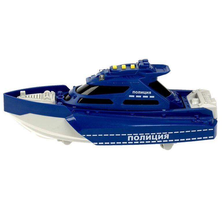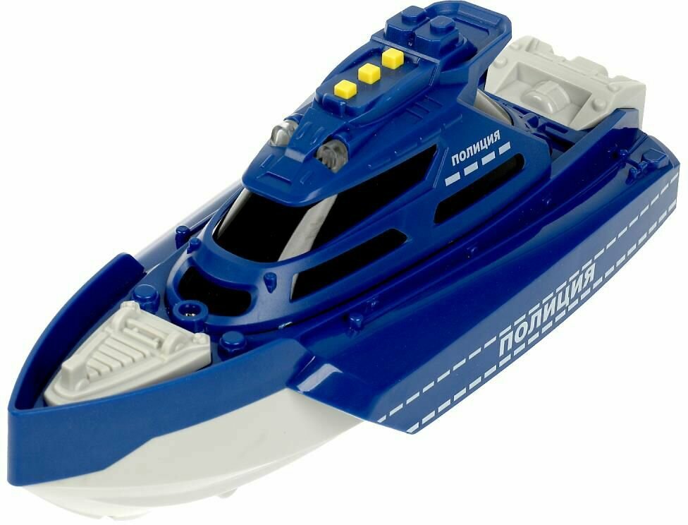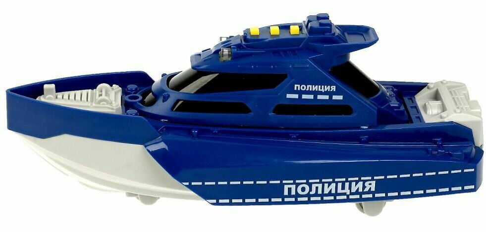 Машина пластиковая полицейский катер 22 см со звуком и светом, свободный ход Цвет Синий/Серый технопарк ZY1229647-R