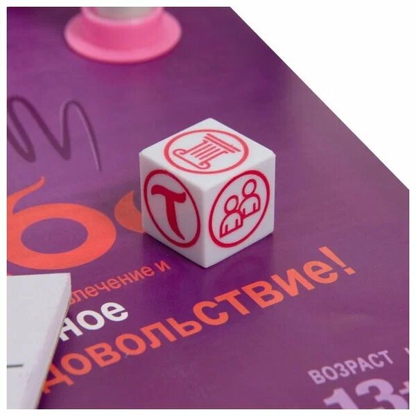 | Комплектация | В комплект входит: кубик с пятью разными вариантами игры, более 1000 загадываемых слов, пищалка для слов табу, блокнот для записи очков, лоток для карточек, песочные часы, правила игры. |
