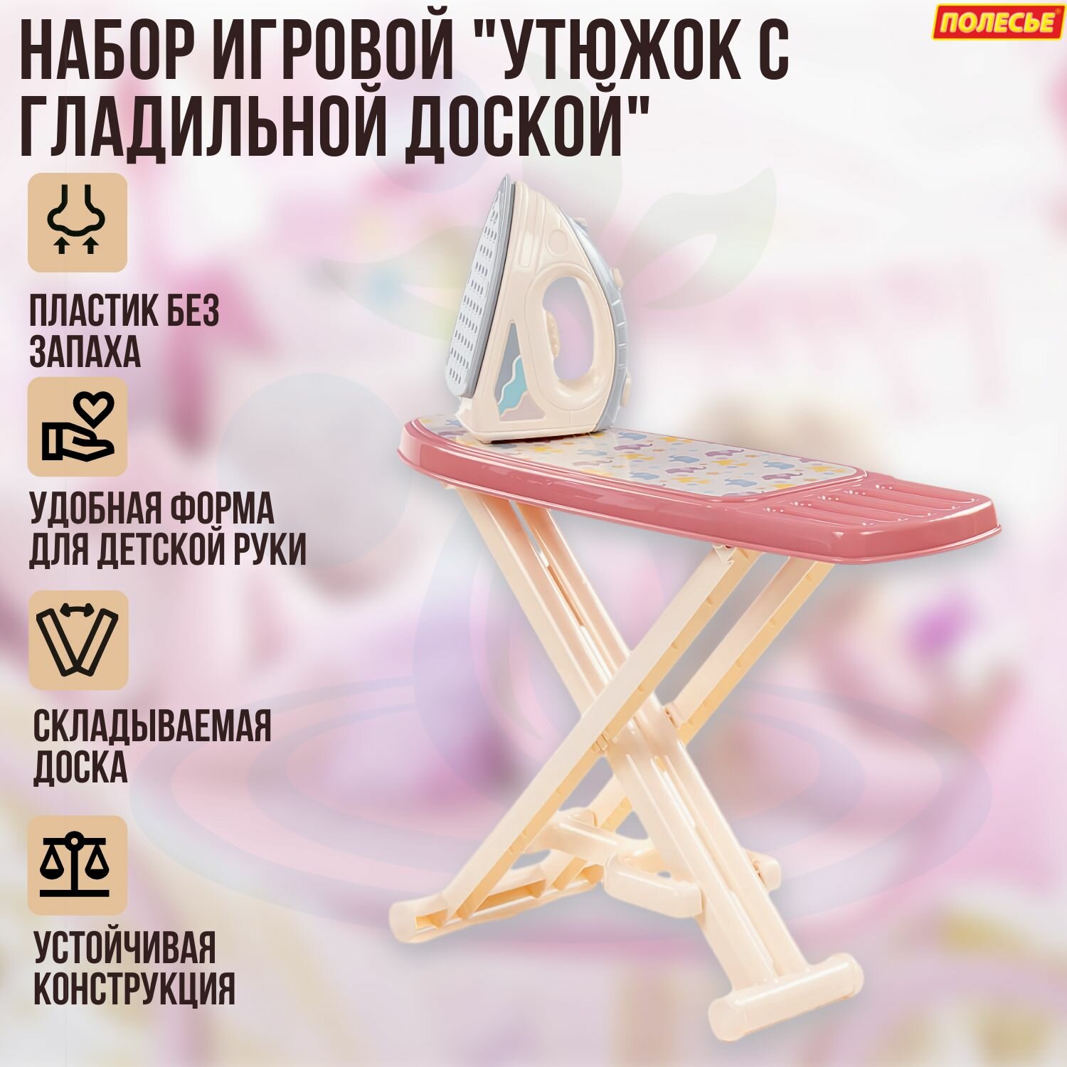 Игровой набор полесье Утюжок №3 с гладильной доской коралловый П-67460