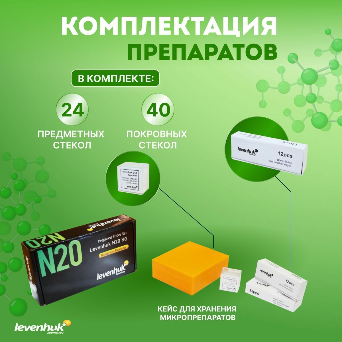 Набор готовых микропрепаратов Levenhuk (Левенгук) N20 NG