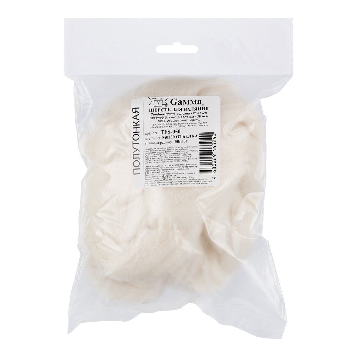 Купить Шерсть для валяния "Gamma" TFS-050 100% полутонкая шерсть 50 г №0230 отбелка