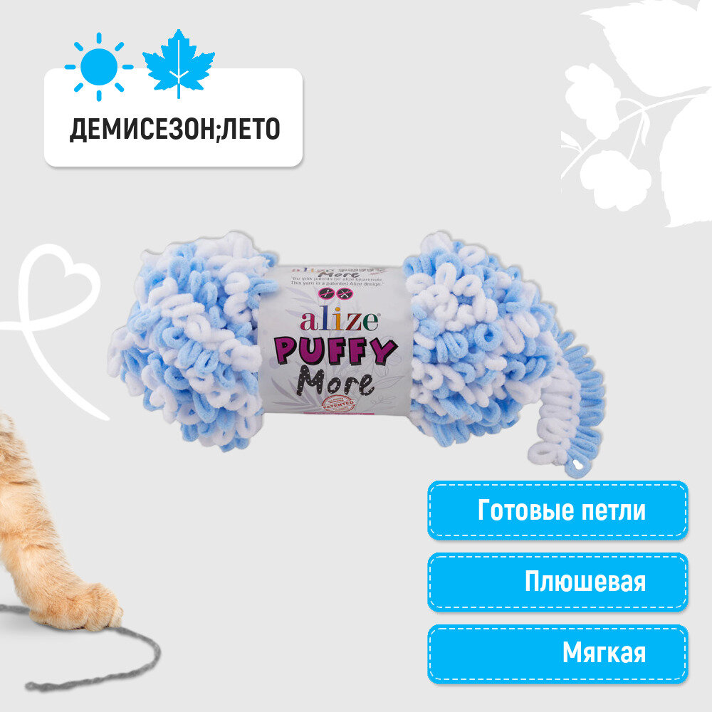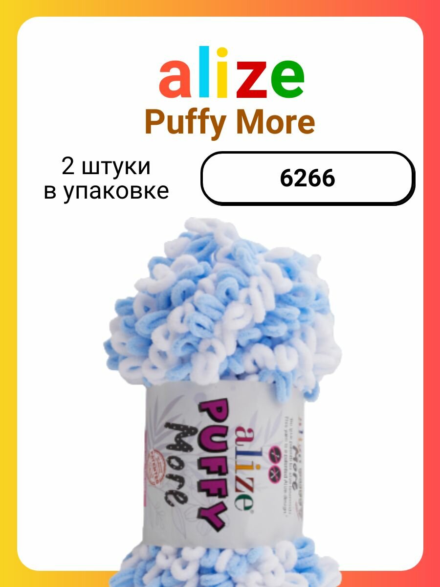 Пряжа Alize Puffy More (6266 белый-голубой), 5 шт. по 150 г, Alize