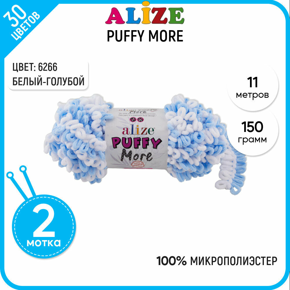Купить Пряжа Puffy MORE (Alize), неж.голубой/белый - 6266, 100% микрополиэстер, 2 мотка, 150 г., 11,5 м.