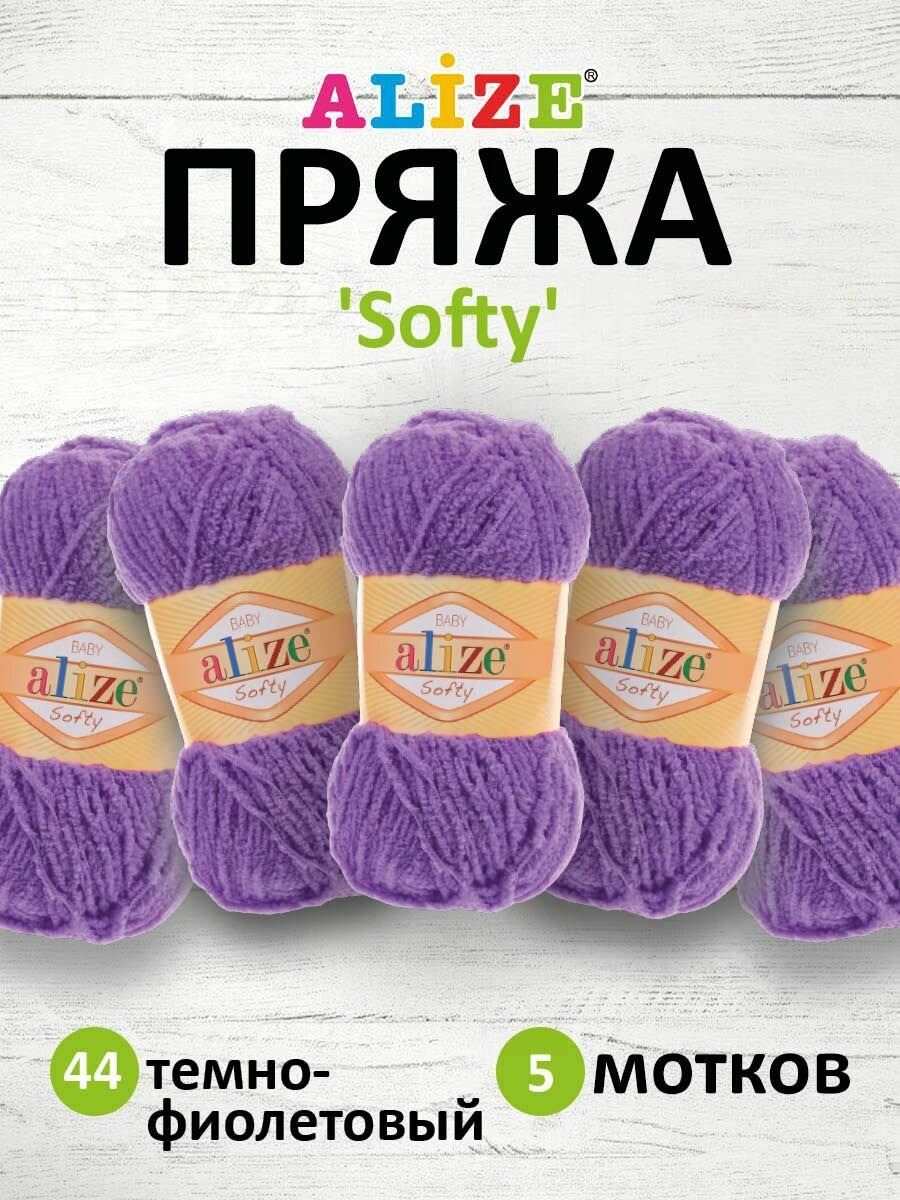 Пряжа ALIZE SOFTY, фиолетовый - 44, 100% микрополиэстер, 5 мотков, 50 г, 115 м.