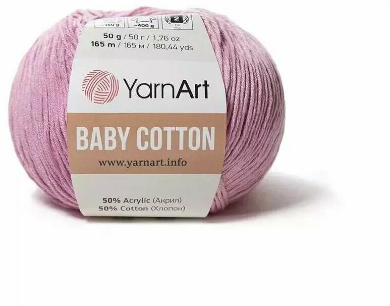 СохранитьПряжа YarnArt Baby Cotton -1 шт, 419 пыльная роза, 165 м/50 г, 50% хлопок, 50% акрил /ярнарт беби коттон/ интересное: