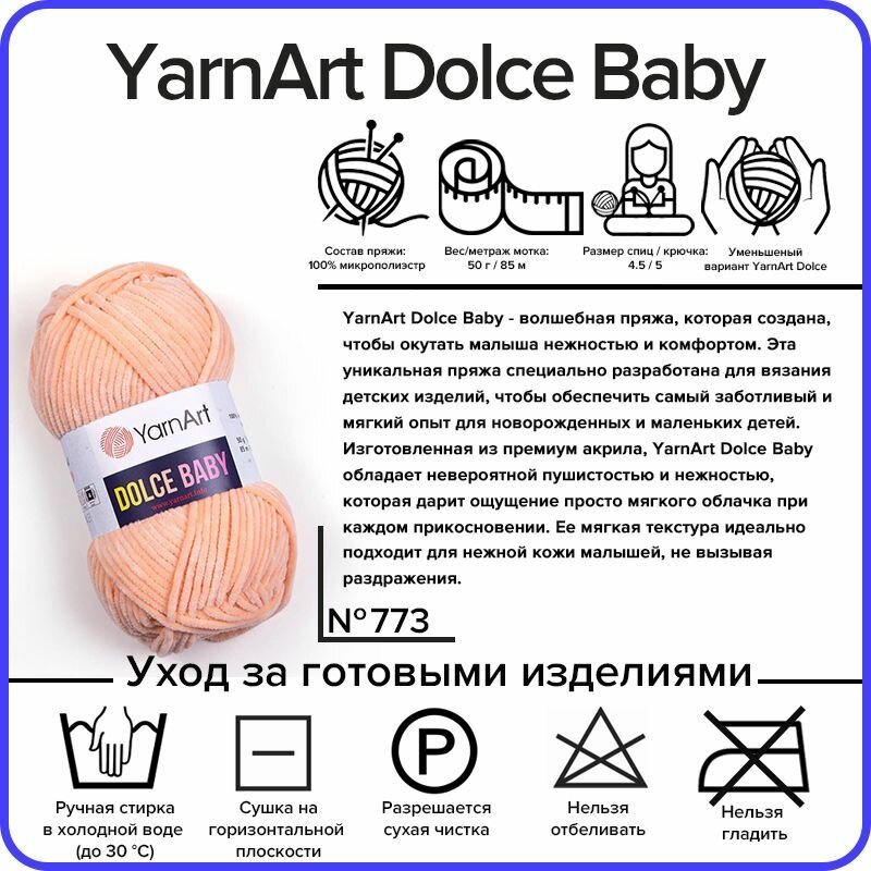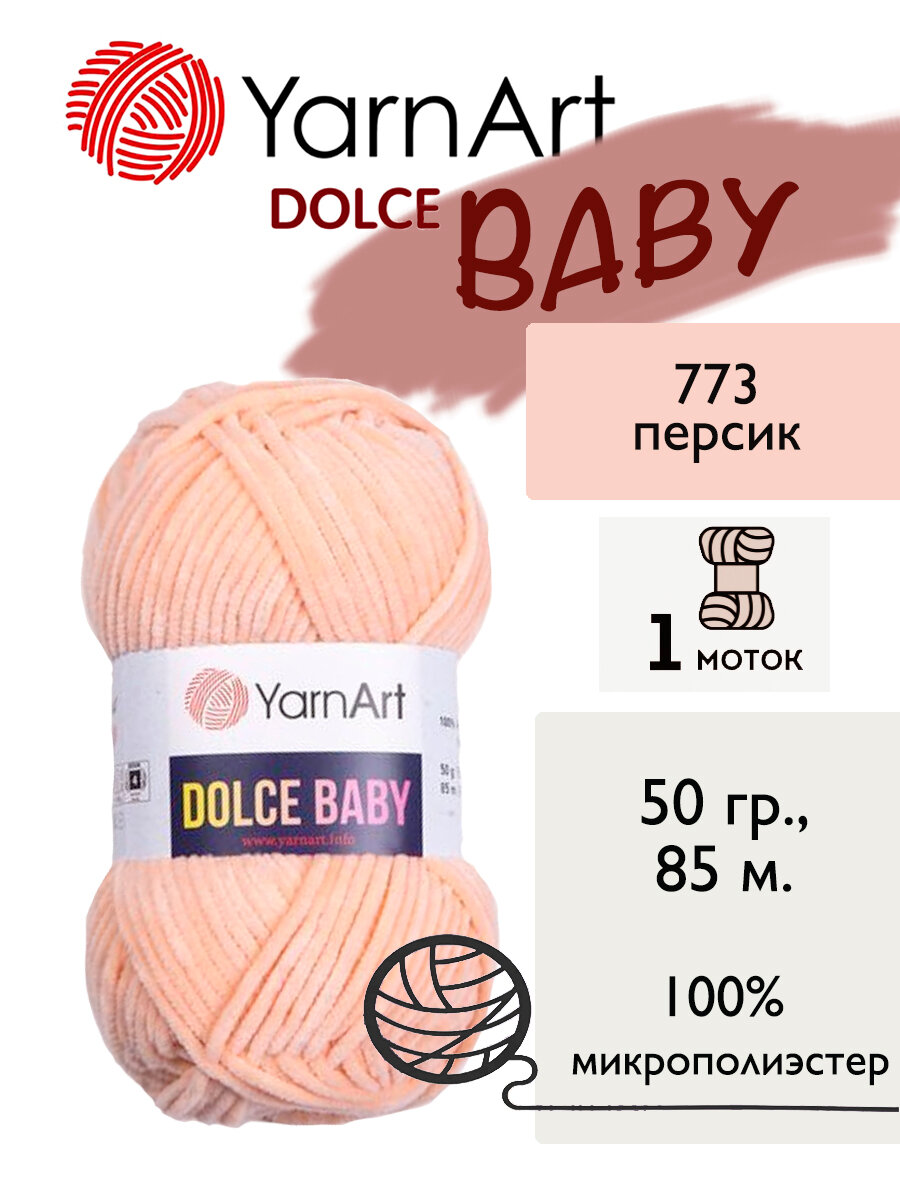 Купить Пряжа YarnArt Dolce baby Персиковый (773) 1 моток 50 г/85 м (100% микрополиэстер) ярнарт дольче беби
